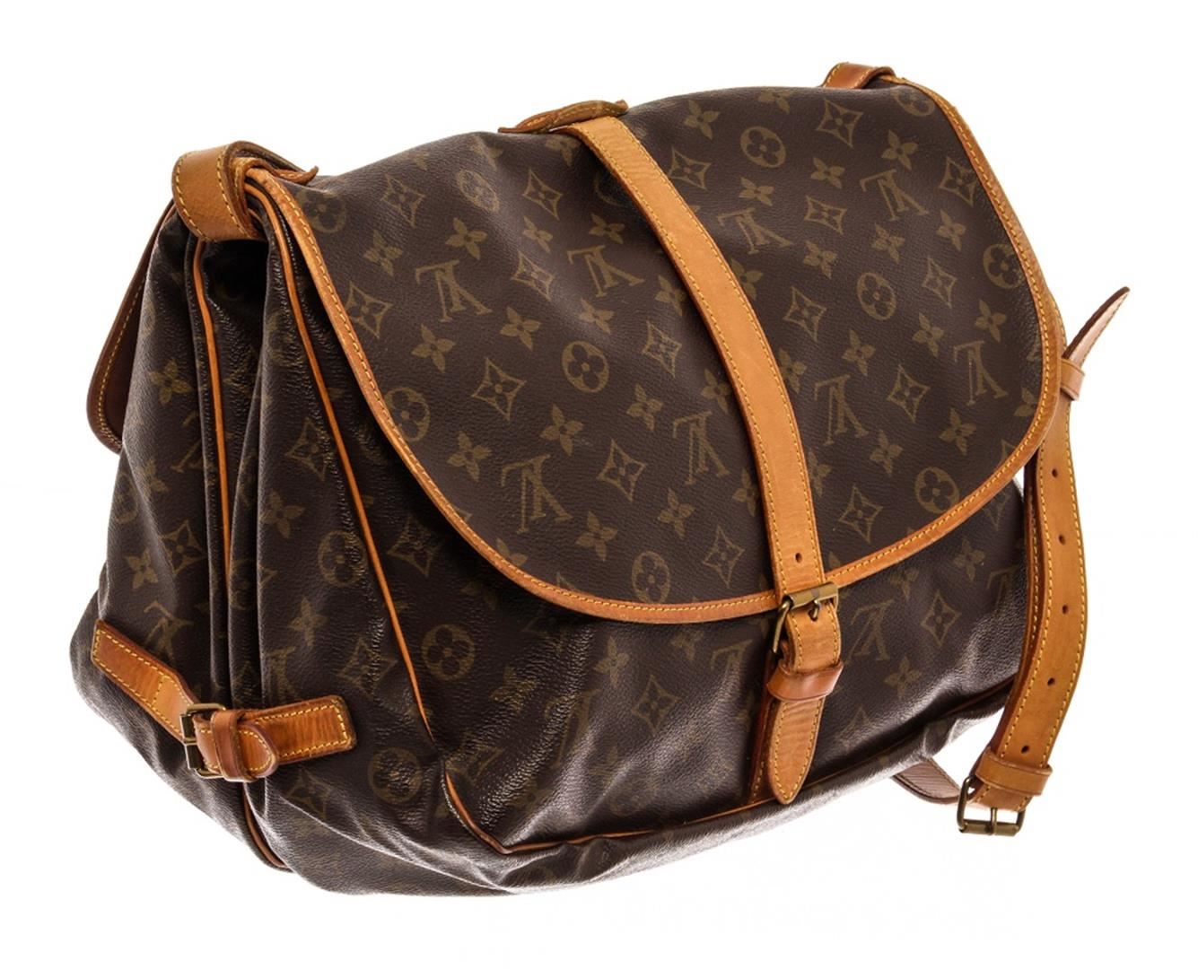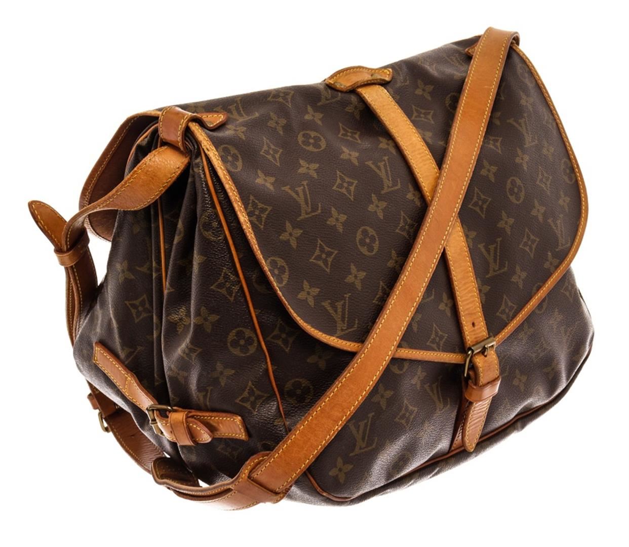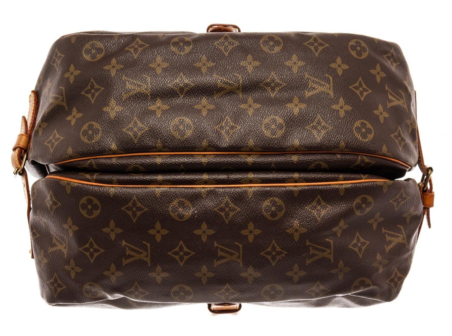 Louis Vuitton Brown Monogram Canvas Saumur 35 Messenger Bag. All available information is listed in the description and shown in the photos. Louis Vuitton Brown Monogram Canvas Saumur 35 Messenger Bag with brown coated canvas, brass hardware, single adjustable shoulder strap, leather trim embellishment, canvas lining & three interior pockets, buckle closure at front. Height: 12" Width: 14" Depth: 4.25", Shoulder Strap Drop: 17.75" / 30.48 x 35.56 x 10.79 Cm