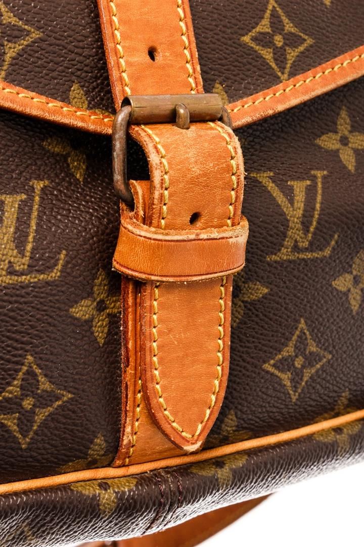 Louis Vuitton Brown Monogram Canvas Saumur 35 Messenger Bag. All available information is listed in the description and shown in the photos. Louis Vuitton Brown Monogram Canvas Saumur 35 Messenger Bag with brown coated canvas, brass hardware, single adjustable shoulder strap, leather trim embellishment, canvas lining & three interior pockets, buckle closure at front. Height: 12" Width: 14" Depth: 4.25", Shoulder Strap Drop: 17.75" / 30.48 x 35.56 x 10.79 Cm