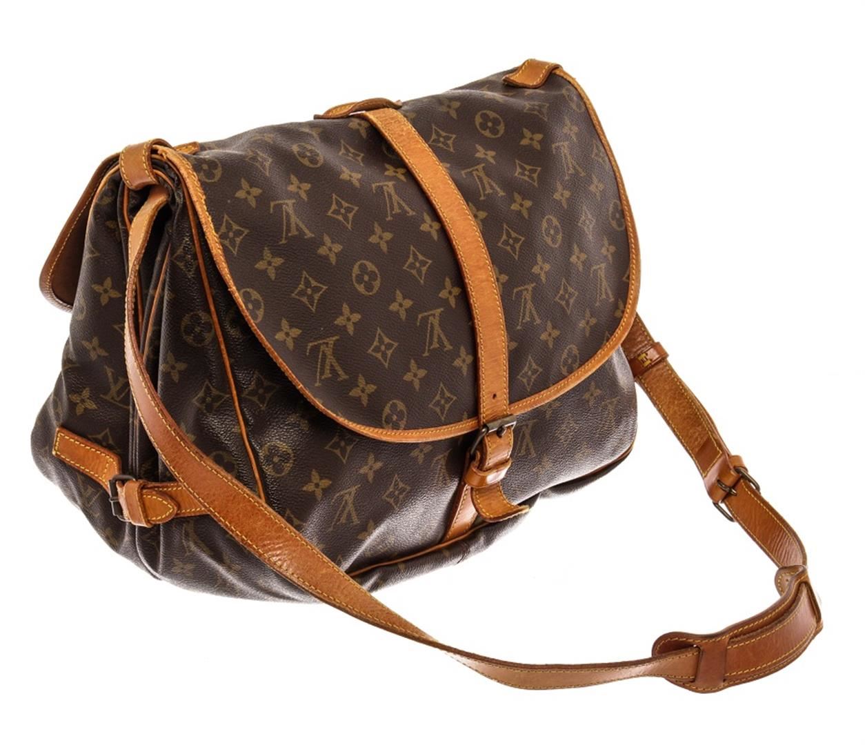 Louis Vuitton Brown Monogram Canvas Saumur 35 Messenger Bag. All available information is listed in the description and shown in the photos. Louis Vuitton Brown Monogram Canvas Saumur 35 Messenger Bag with brown coated canvas, brass hardware, single adjustable shoulder strap, leather trim embellishment, canvas lining & three interior pockets, buckle closure at front.        Height: 12" Width: 14" Depth: 4.25", Shoulder Strap Drop: 17.75" / 30.48 x 35.56 x 10.79 Cm