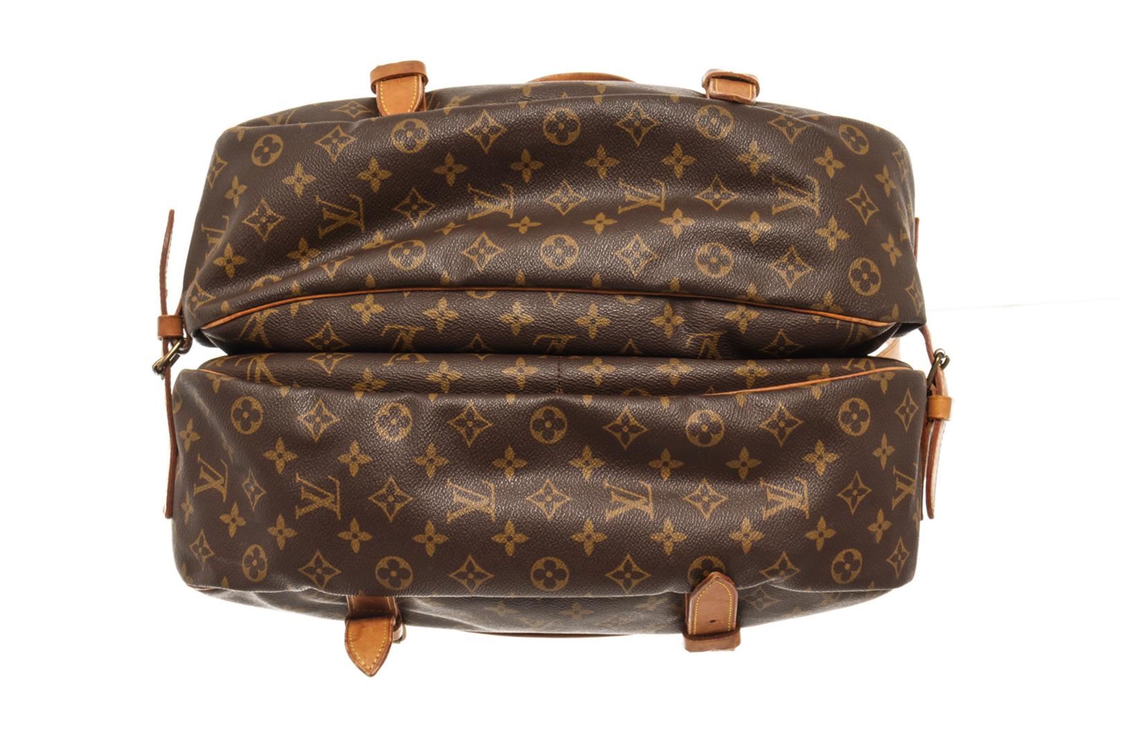 One Louis Vuitton Brown Monogram Canvas Saumur 43 Shoulder Bag. Item is sold AS-IS. All available information is listed in the description and shown in the photo. Louis Vuitton Brown Monogram Canvas Saumur 43 Shoulder Bag with gold-tone hardware, canvas/leather, double-strap design buckle fastening, side buckle fastening, adjustable shoulder strap internal patch pocket full lining. Depth 9.4 in, Height 12.2 in, Strap 20.1 in, Width 16.5 in / Depth 24 cm, Height 31 cm, Strap 51 cm, Width 42 cm