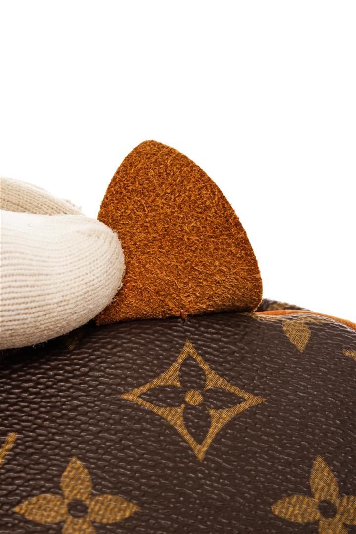 Louis Vuitton Brown Monogram Canvas Speedy 30 Satchel Bag. All available information is listed in the description and shown in the photos. Louis Vuitton Brown Monogram Canvas Speedy 30 Satchel Bag with brass hardware, leather trim, dual rolled handles, leather trim embellishment, canvas lining & single interior pocket, zip closure at top. Height: 8.5" Width: 12" Depth: 7", Handle Drop: 4" / 21.59 x 30.48 x 17.78 Cm