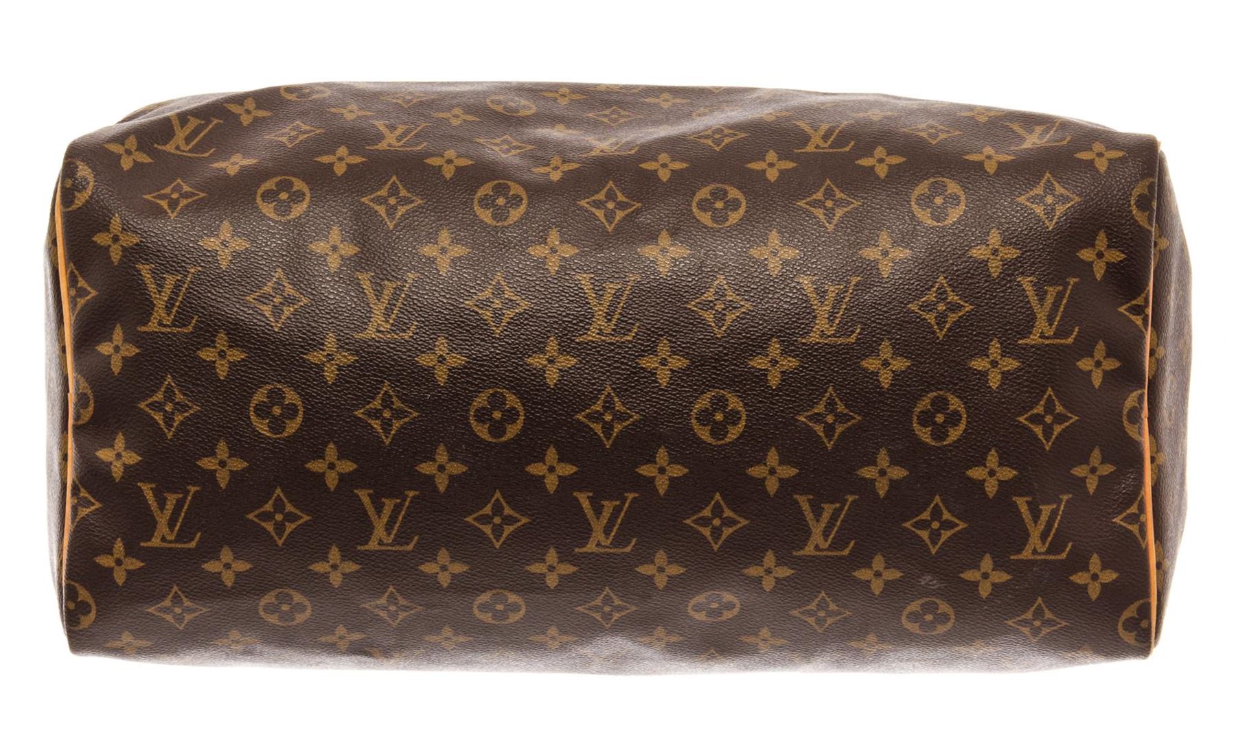 Louis Vuitton Brown Monogram Canvas Speedy 40 Satchel Bag. All available information is listed in the description and shown in the photos. Louis Vuitton Brown Monogram Canvas Speedy 40 Satchel Bag with brass hardware, leather trim, dual rolled leather top handles & dual shoulder straps, leather trim embellishment, canvas lining & single interior pocket, zip closure at top. Height: 14" Width: 15" Depth: 8", Handle Drop: 4" / 35.56 x 38.1 x 20.32 Cm