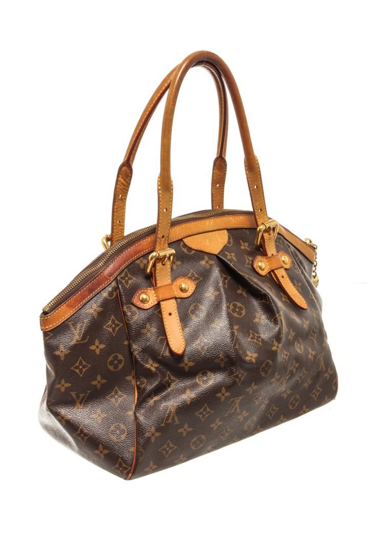 One Louis Vuitton Brown Monogram Canvas Tivoli GM Tote Bag. Item is sold AS-IS. All available information is listed in the description and shown in the photo. louis vuitton brown monogram canvas tivoli gm tote bag with gold-tone hardware, brown monogram canvas leather trim, two adjustable top handles, top zip fastening, internal patch pocket internal logo patch, metal feet Depth 7.5 in, Height 10.6 in, Width 12.8 in / Depth 19 cm, Height 27 cm, Width 32.5 cm