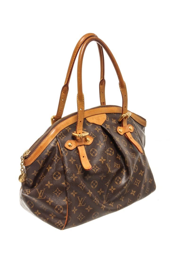 One Louis Vuitton Brown Monogram Canvas Tivoli GM Tote Bag. Item is sold AS-IS. All available information is listed in the description and shown in the photo. louis vuitton brown monogram canvas tivoli gm tote bag with gold-tone hardware, brown monogram canvas leather trim, two adjustable top handles, top zip fastening, internal patch pocket internal logo patch, metal feet Depth 7.5 in, Height 10.6 in, Width 12.8 in / Depth 19 cm, Height 27 cm, Width 32.5 cm