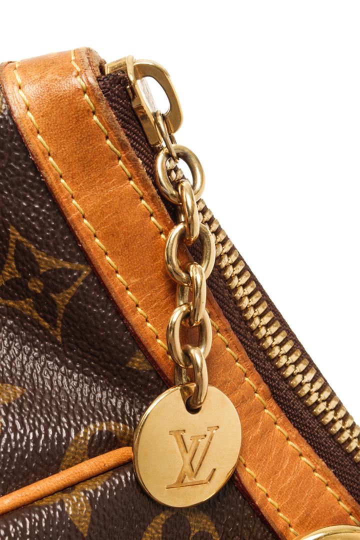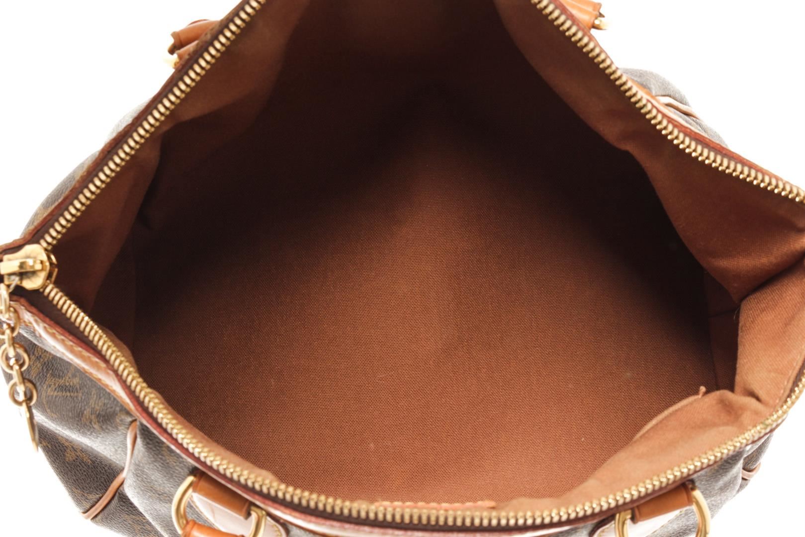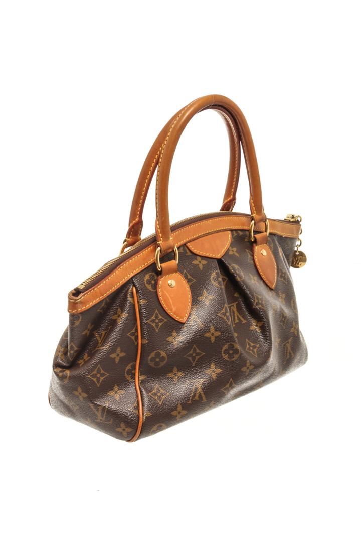 One Louis Vuitton Brown Monogram Canvas Tivoli PM Tote bag. Item is sold AS-IS. All available information is listed in the description and shown in the photo. Louis Vuitton Brown Monogram Canvas Tivoli PM Tote bag with gold-tone hardware, two leather handles, sturdy metal feet, canvas lining,