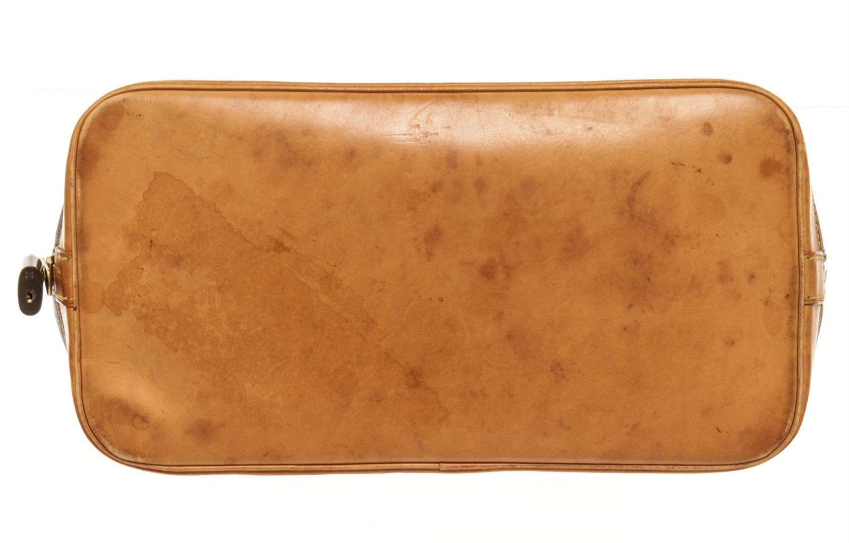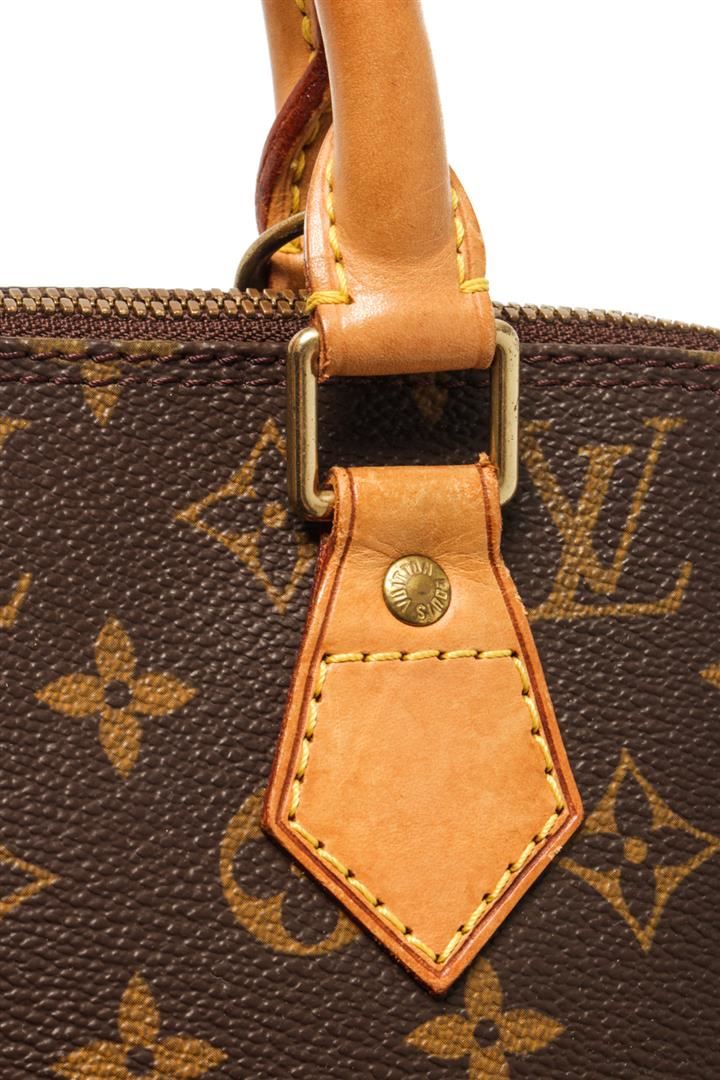 One Louis Vuitton Brown Monogram Canvas and Leather Alma PM Bag. Item is sold AS-IS. All available information is listed in the description and shown in the photo. louis vuitton brown monogram canvas and leather alma pm bag with constructed from monogram canvas and leather it displays dual handles at the top gold tone hardware and a padlock. the fabric lined interior of the bag is secured by a zipper closure at the top. Bottom of bag is worn, Height: 25 cm Width: 16 cm Length: 31 cm / 9.84" x 6.29" x 12.20" Inches