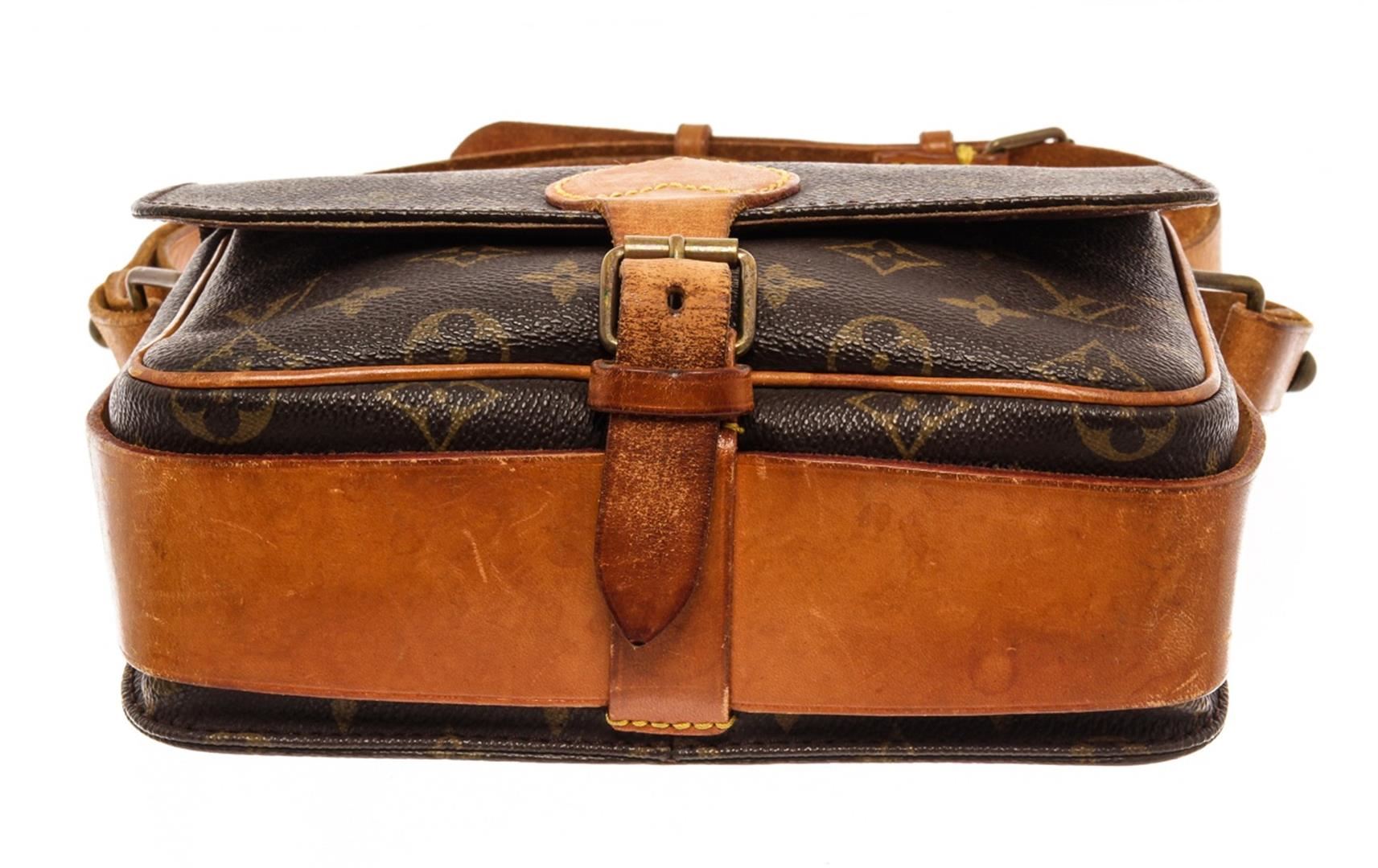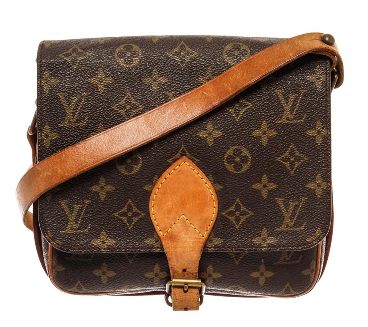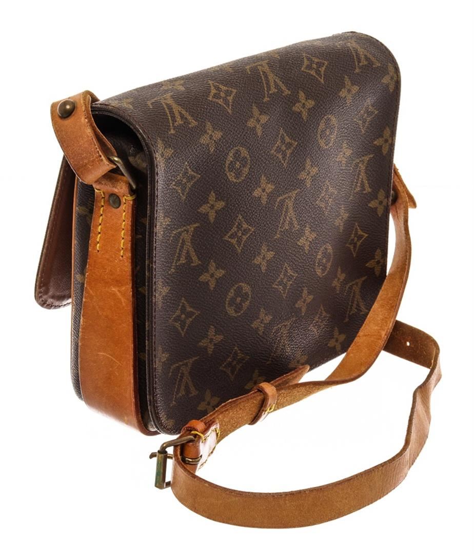 Louis Vuitton Brown Monogram Cartouchierè MM Messenger Bag. All available information is listed in the description and shown in the photos. Louis Vuitton Brown Monogram Cartouchierè MM Messenger Bag with brown coated canvas, brass hardware, single adjustable shoulder strap, leather lining, flap & buckle closures at front. Height: 7.75" Width: 8.25" Depth: 3.25", Shoulder Strap Drop: 18.25" / 19.68 x 20.95 x 8.25 Cm