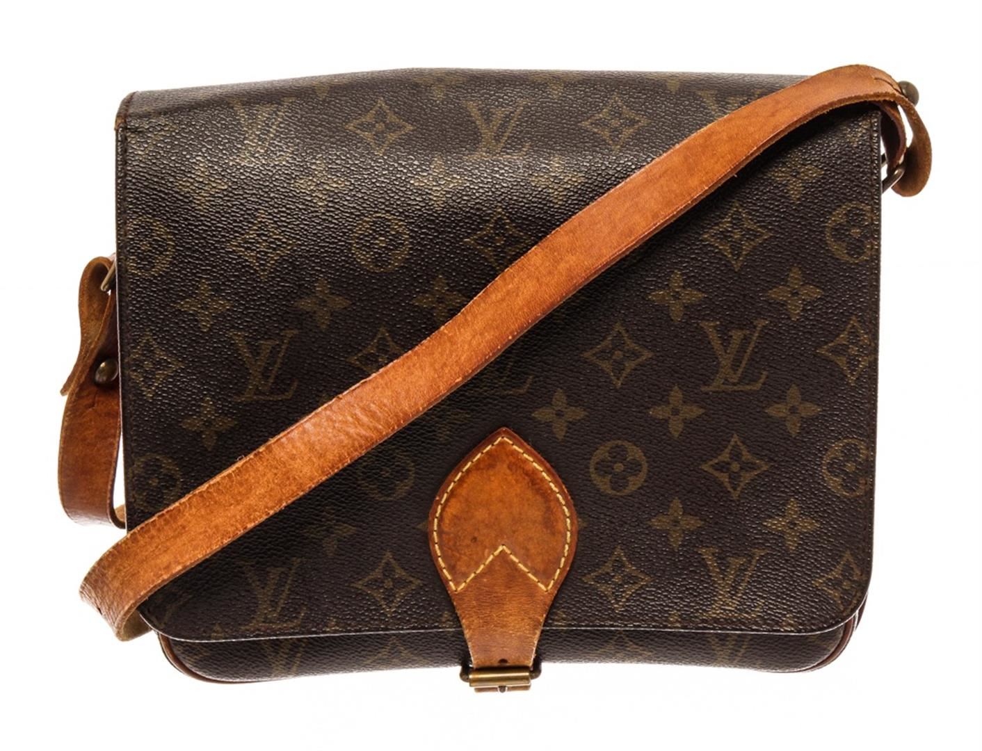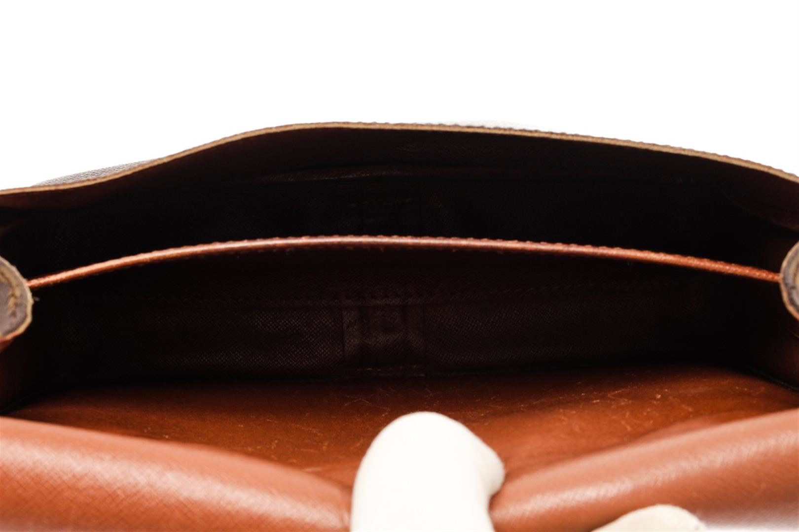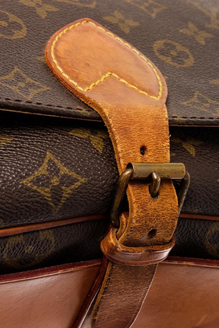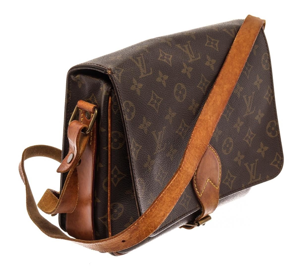 Louis Vuitton Brown Monogram Cartouchiere GM Messenger Bag. All available information is listed in the description and shown in the photos. Louis Vuitton Brown Monogram Cartouchiere GM Messenger Bag with brown printed, brass hardware, single adjustable shoulder strap, leather lining, buckle closure at front. Height: 9.25" Width: 10.25" Depth: 3", Shoulder Strap Drop Max: 21.5" / 23.49 x 26.03 x 7.62 Cm