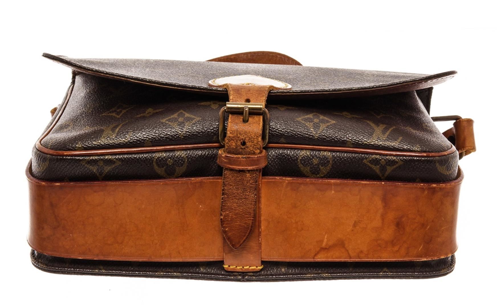 Louis Vuitton Brown Monogram Cartouchiere GM Messenger Bag. All available information is listed in the description and shown in the photos. Louis Vuitton Brown Monogram Cartouchiere GM Messenger Bag with brown printed, brass hardware, single adjustable shoulder strap, leather lining, buckle closure at front. Height: 9.25" Width: 10.25" Depth: 3", Shoulder Strap Drop Max: 21.5" / 23.49 x 26.03 x 7.62 Cm