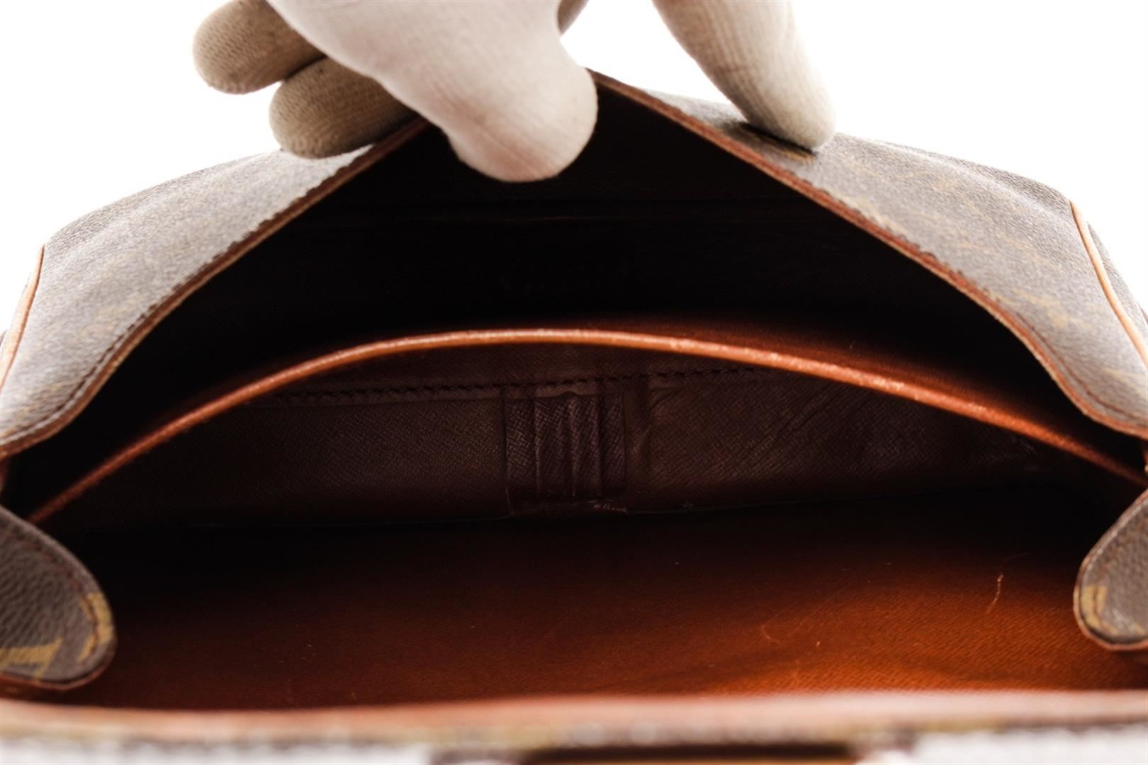 Louis Vuitton Brown Monogram Cartouchiere GM Messenger Bag. All available information is listed in the description and shown in the photos. Louis Vuitton Brown Monogram Cartouchiere GM Messenger Bag with brown printed, brass hardware, single adjustable shoulder strap, leather lining, buckle closure at front. Height: 9.25" Width: 10.25" Depth: 3", Shoulder Strap Drop Max: 21.5" / 23.49 x 26.03 x 7.62 Cm