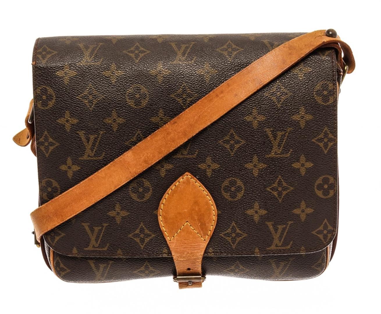 Louis Vuitton Brown Monogram Cartouchiere GM Messenger Bag. All available information is listed in the description and shown in the photos. Louis Vuitton Brown Monogram Cartouchiere GM Messenger Bag with brown printed, brass hardware, single adjustable shoulder strap, leather lining, buckle closure at front. Height: 9.25" Width: 10.25" Depth: 3", Shoulder Strap Drop Max: 21.5" / 23.49 x 26.03 x 7.62 Cm