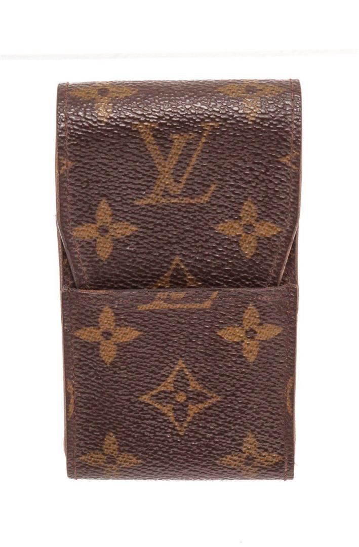 Louis Vuitton Brown Monogram Cigarette Case Wallet with gold-tone hardware, fold-in closure. Measurements: Length: 1 in / 3 cm Width: 2.5 in / 6 cm 3.25 in / 8 cmCONDITION: Pre-Owned Good overall, please see photographs for detail.
