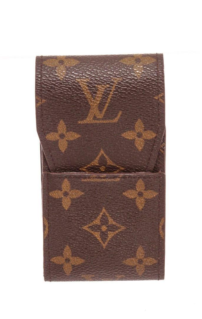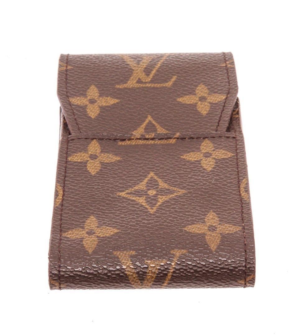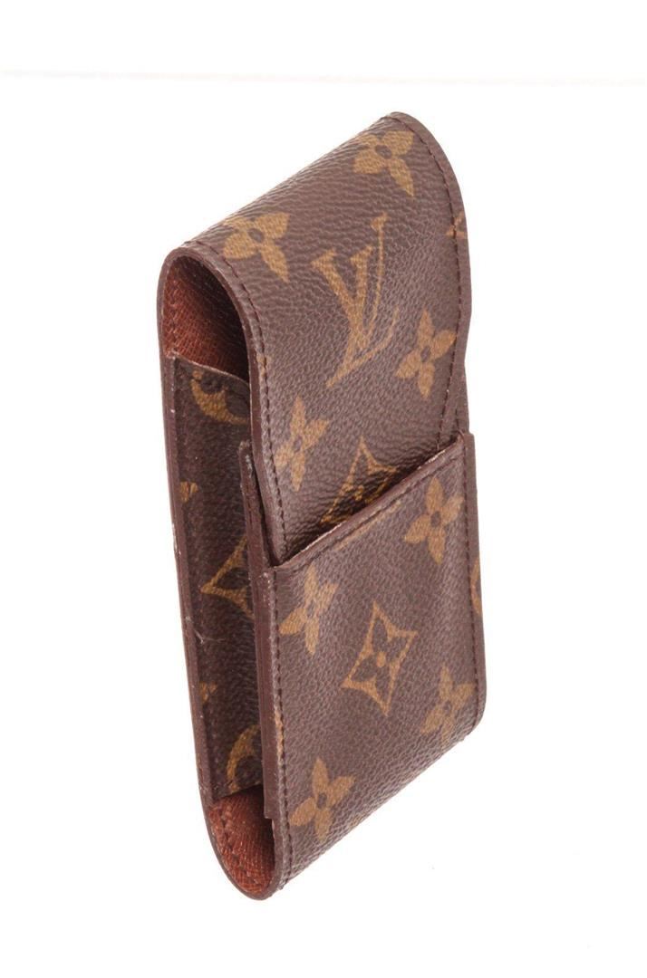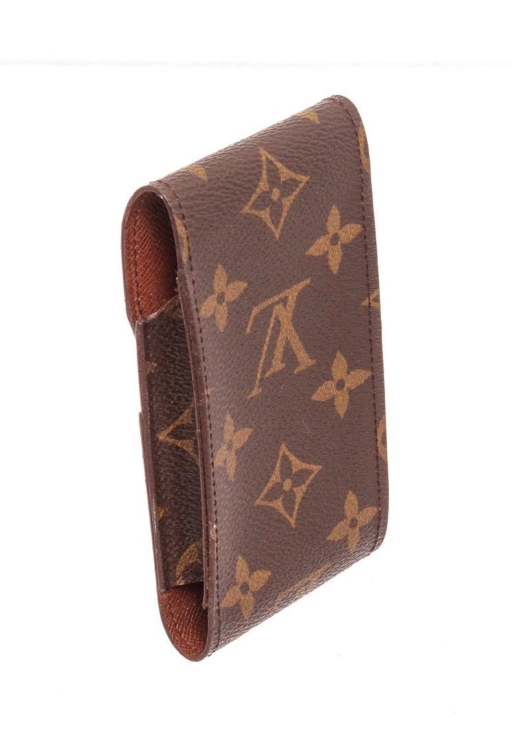 Louis Vuitton Brown Monogram Cigarette Case with brown leather trim, exterior flap pockets, interior flap pockets, and flap closure. Measurements: Length: 1 in / 3 cm Width: 2.5 in / 6 cm 5 in / 13 cm Condition: Pre-Owned Good overall, please see photographs for detail.