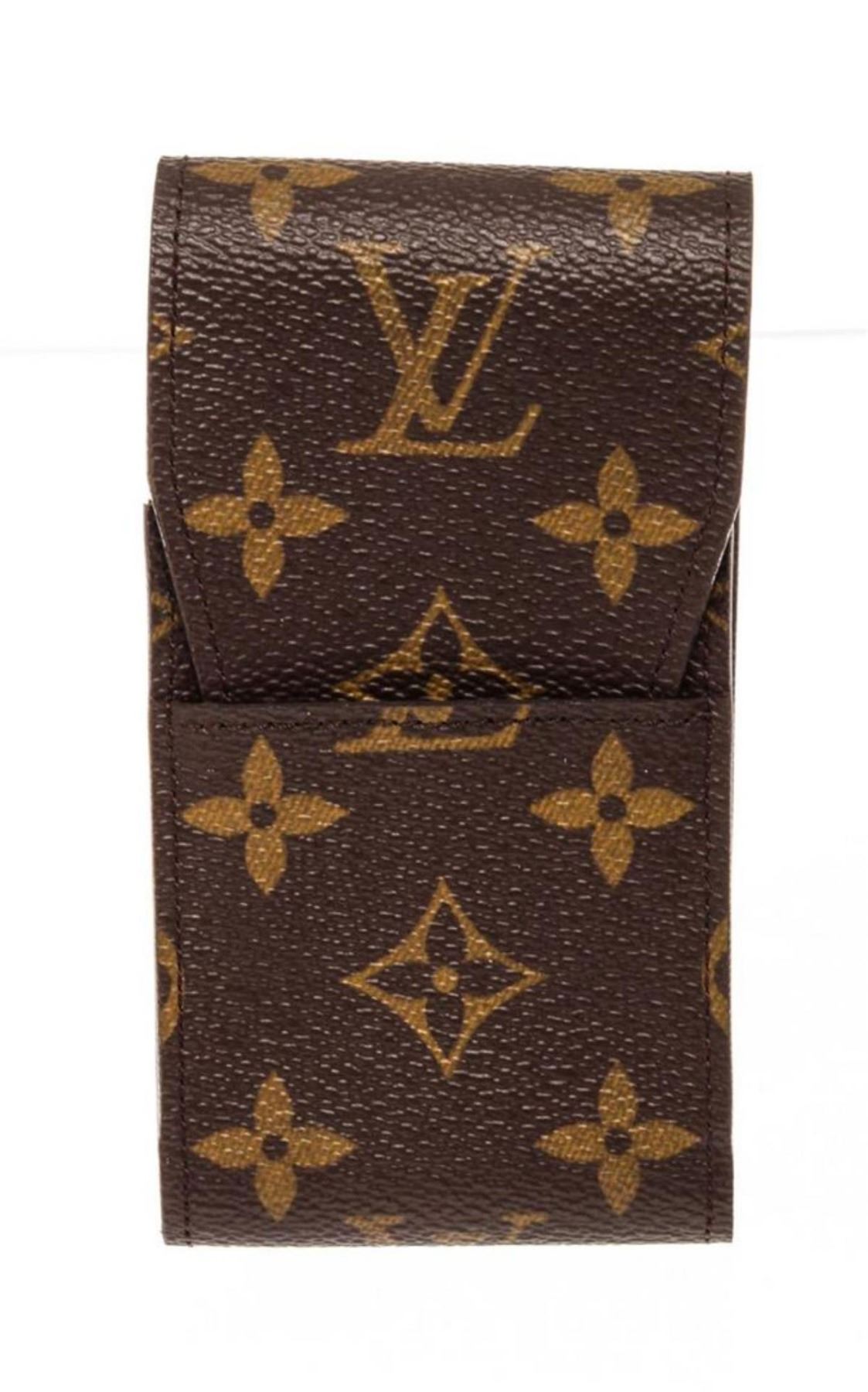 Louis Vuitton Brown Monogram Cigarette Case Wallet, monogram material, tan vachetta leather trim, and flap closure.
