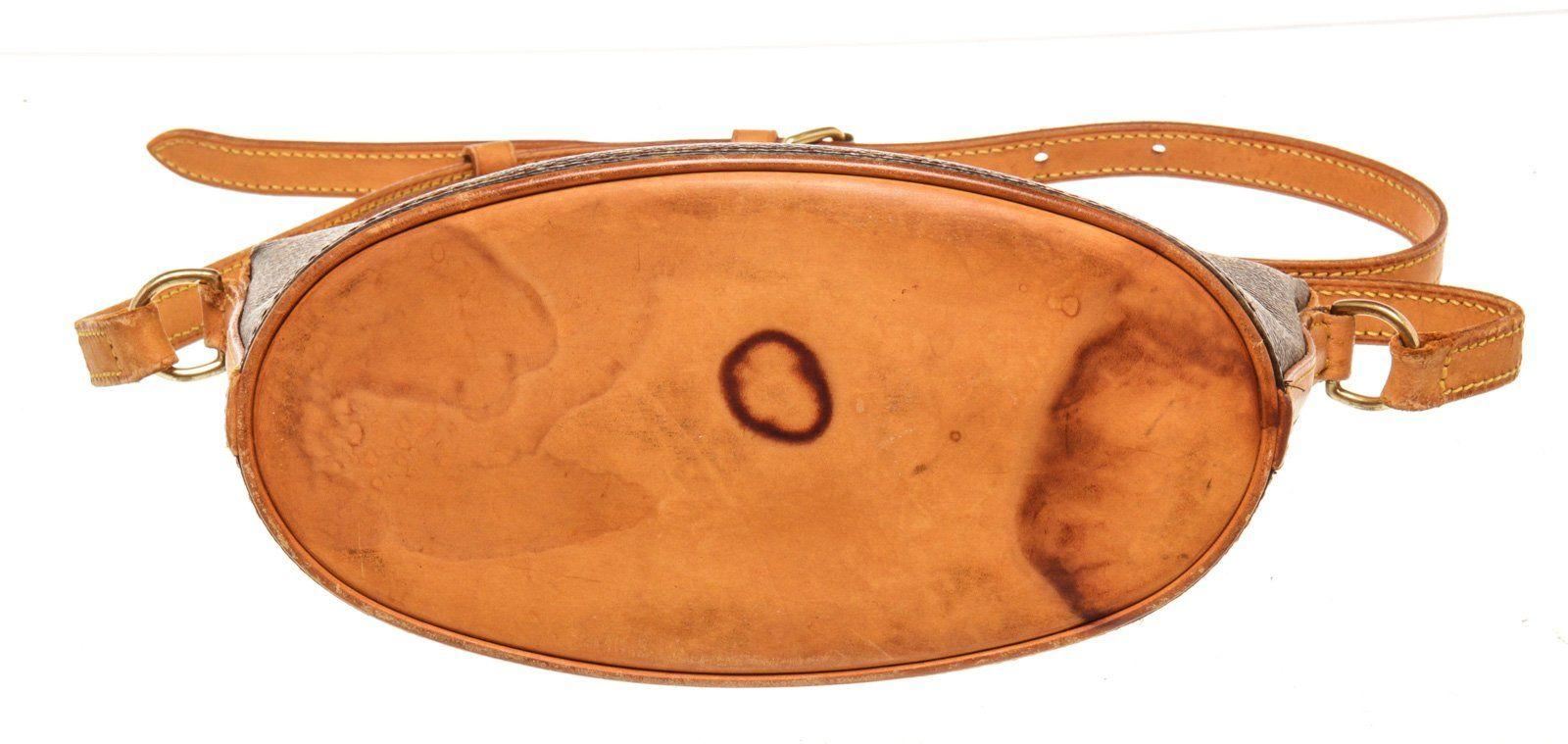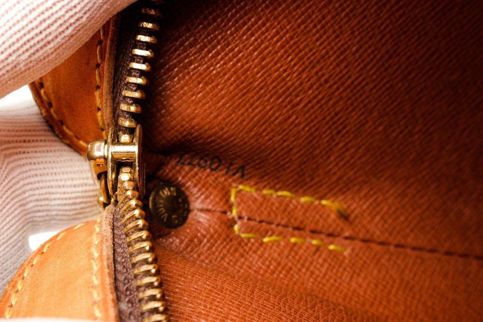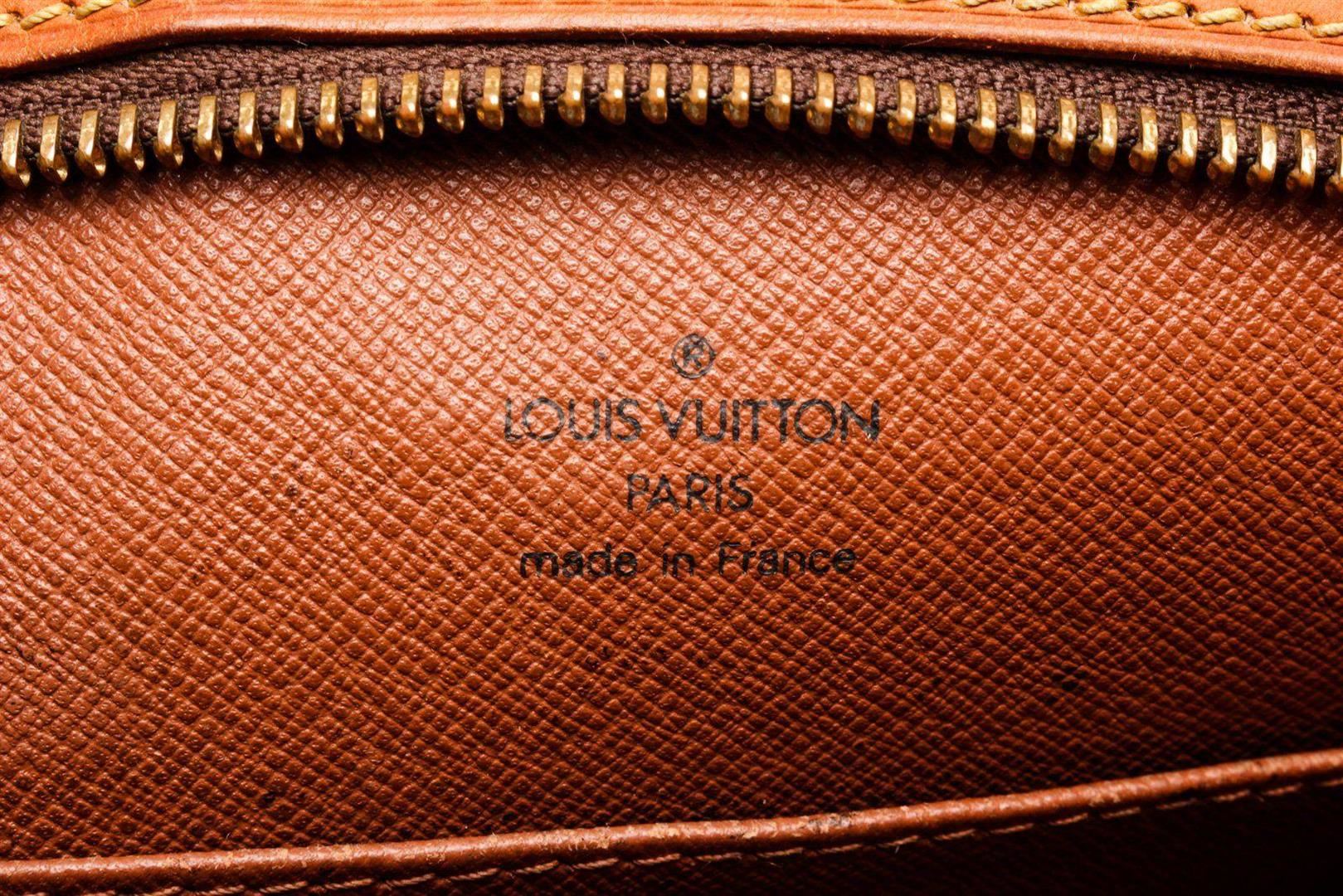 Louis Vuitton Brown Monogram Drouot Crossbody Bag with monogram canvas, gold-tone hardware, trim tan vachetta leather, interior slip pockets, shoulder strap and zipper closure.