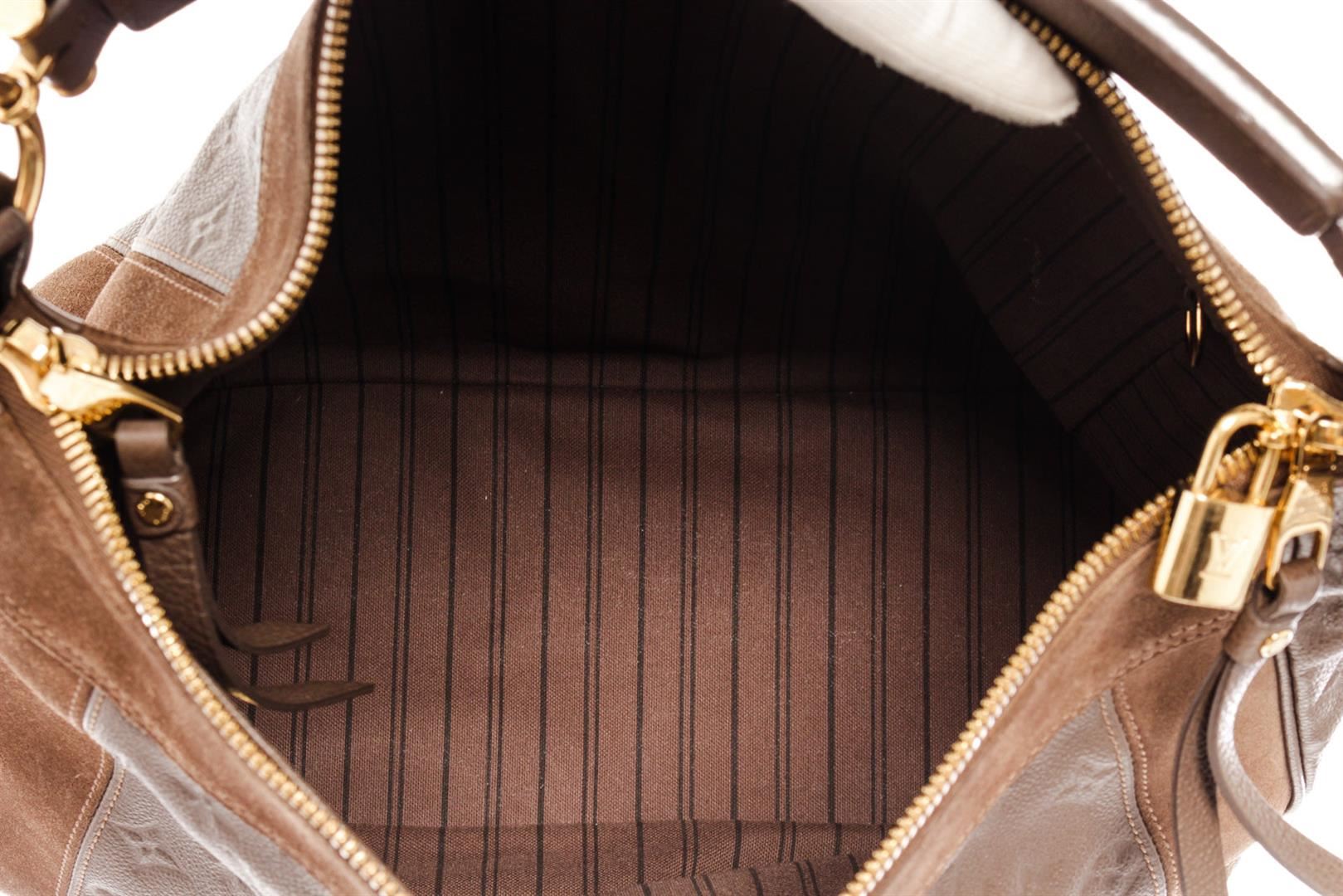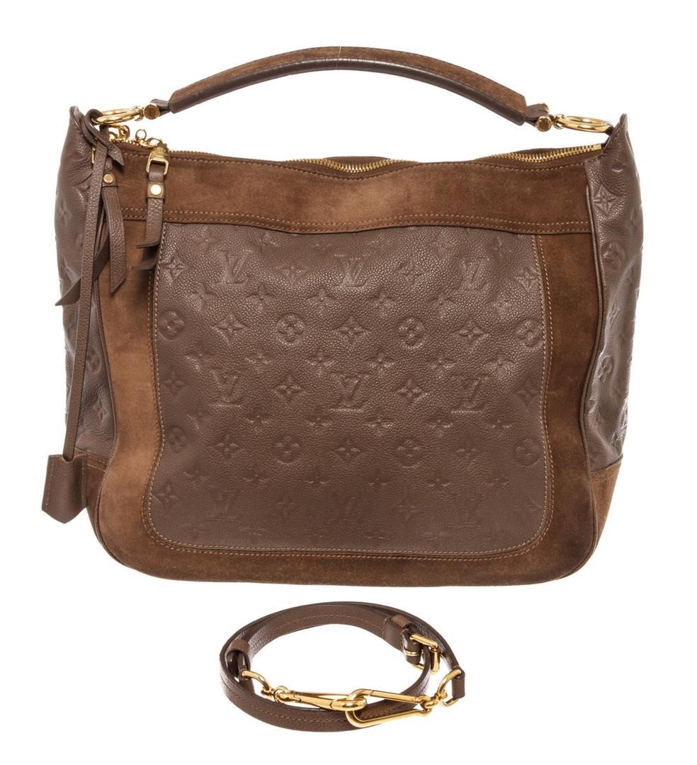 Louis Vuitton Audacieuse MM Bag is a unique combination of suede and embossed Empreinte leather in thick panels along with gold-tone hardware, two flat pockets, one zip pocket, flat leather shoulder strap and a removable, adjustable shoulder strap, two-wa