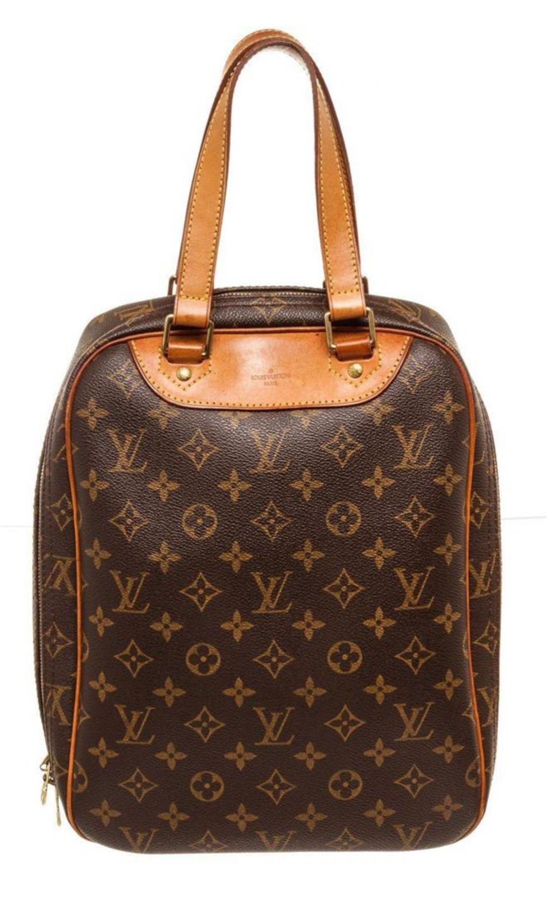 Louis Vuitton Brown Monogram Excursion Travel Bag. Louis Vuitton Brown Monogram Excursion Travel Bag with material monogram canvas, gold-tone hardware, trim tan vachetta leather, interior slip pockets, canvas lining, adjustable, dual top handle and zipper
