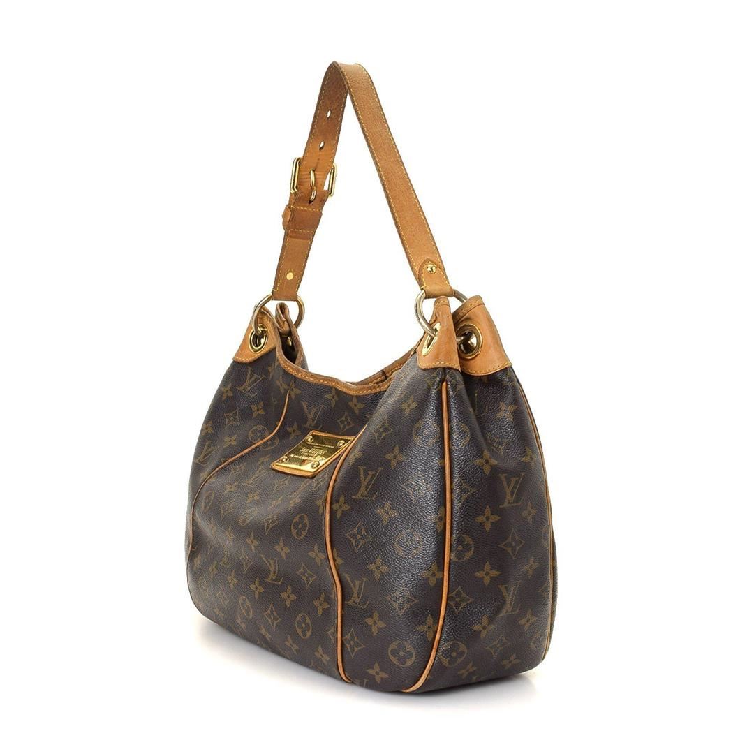Louis Vuitton Brown Monogram Galliera PM Handbag with gold-tone hardware, tan vachetta leather trim, leather shoulder strap, top handles and zipper closure. Measurements: Length: 15 in / 38 cm Width: 4.5 in / 11 cm 10.5 in / 27 cmCONDITION: Pre-Ow
