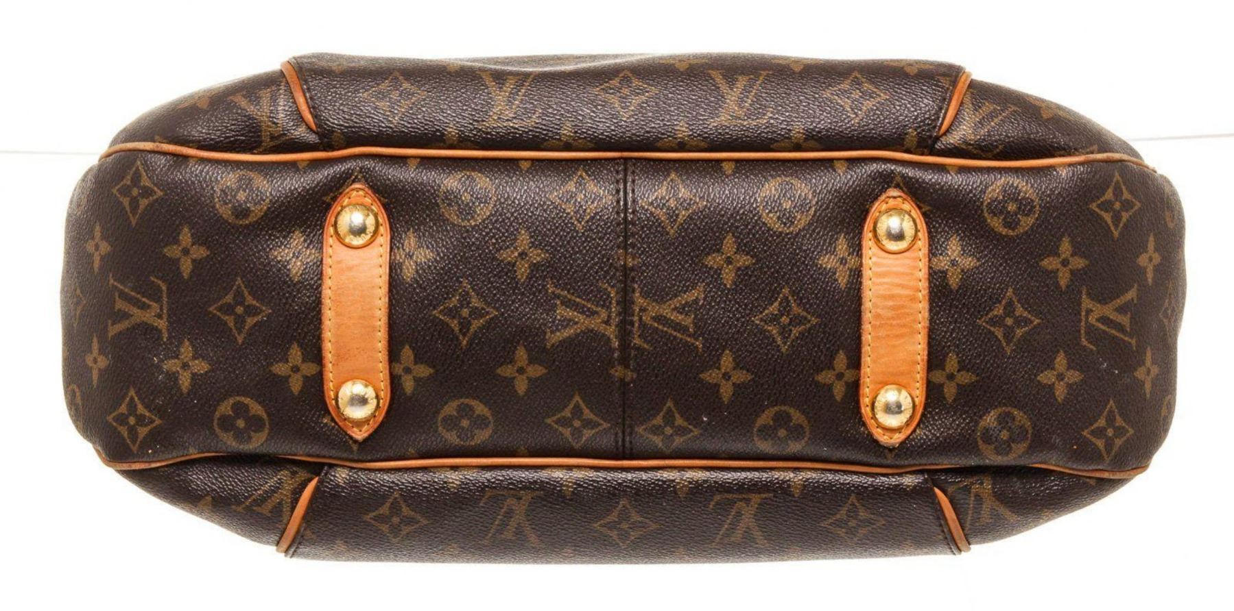 Louis Vuitton Brown Monogram Galliera PM Hobos Bag with material monogram canvas, gold-tone hardware, trim tan vachetta leather, interior slip pockets, shoulder straps and snap closure.