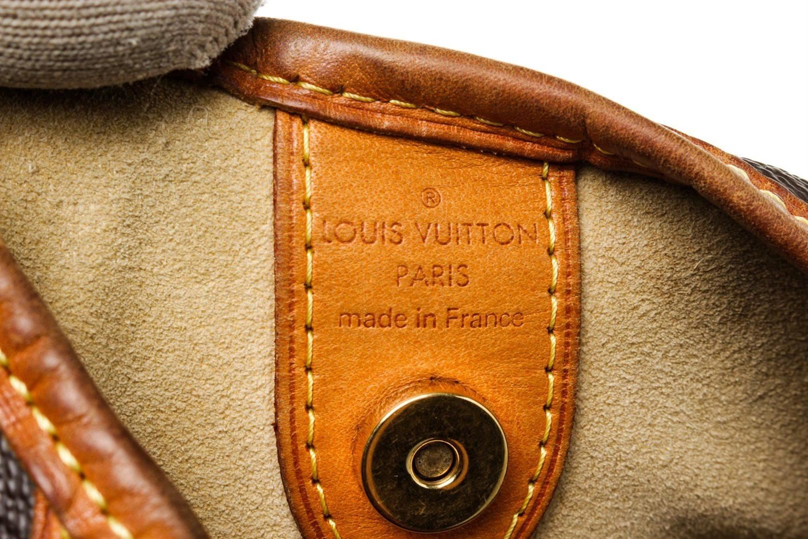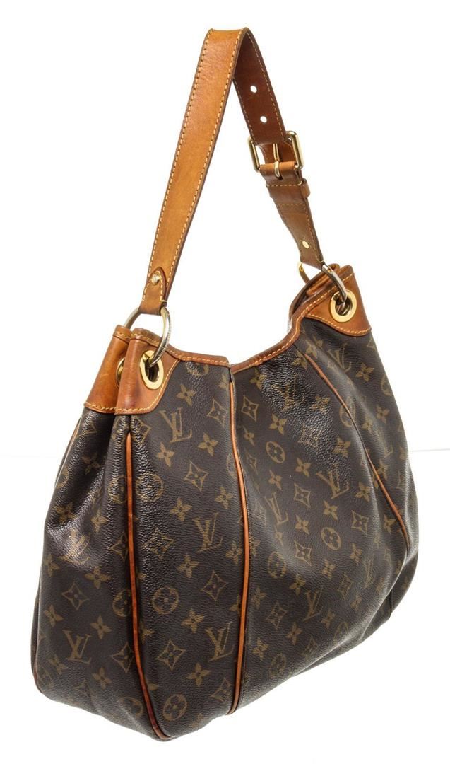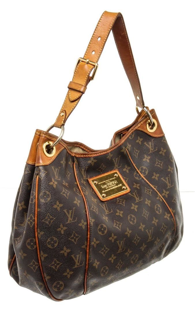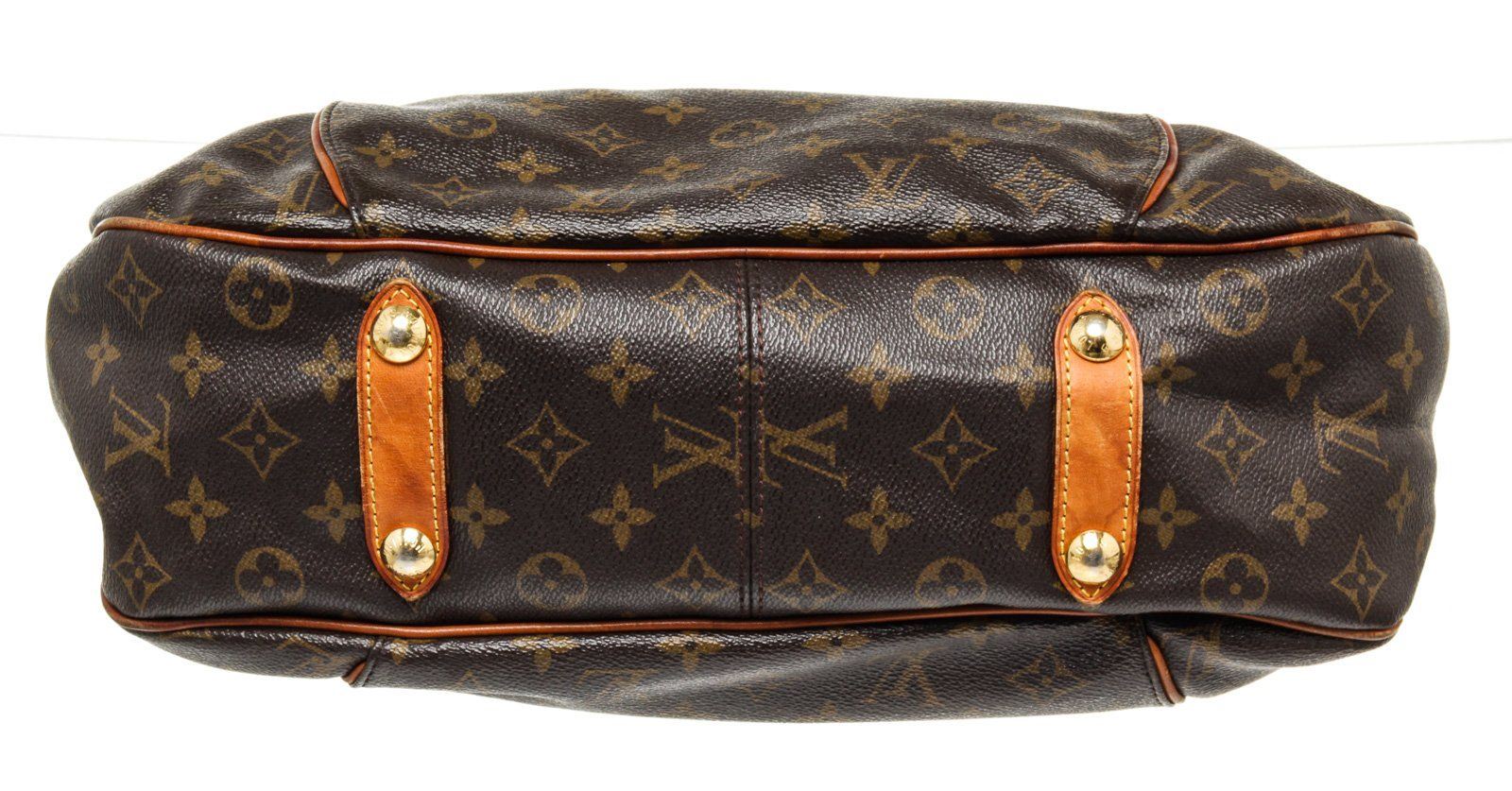 Louis Vuitton Brown Monogram Galliera PM Hobos Bag with monogram canvas, gold-tone hardware, trim tan vachetta leather, interior slip pockets, shoulder straps and snap closure.