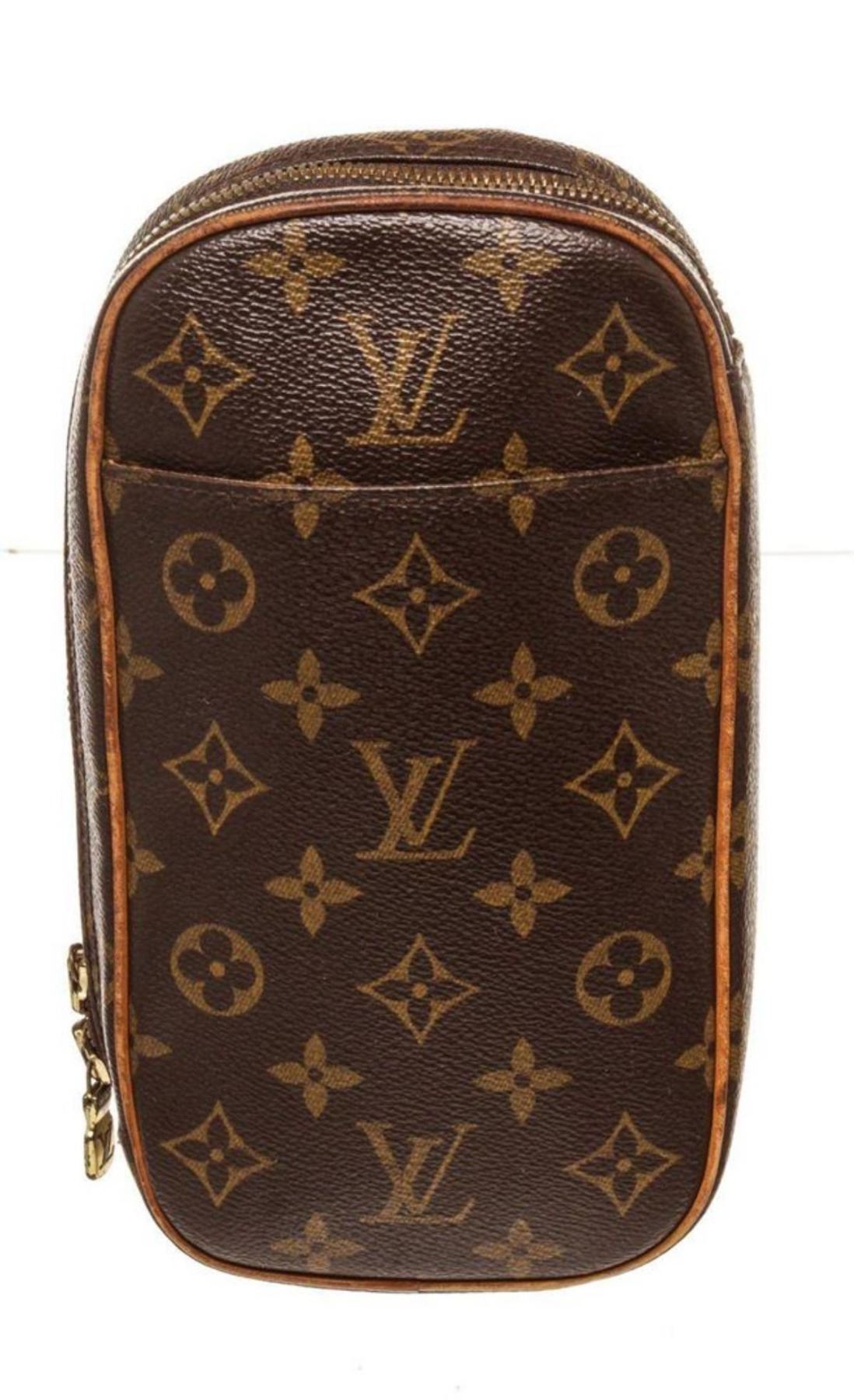 Louis Vuitton Brown Monogram Gange Shoulder Bag. Louis Vuitton Brown Monogram Gange Shoulder Bag with material monogram canvas, gold-tone hardware, trim tan vachetta leather, shoulder strap and zipper closure.