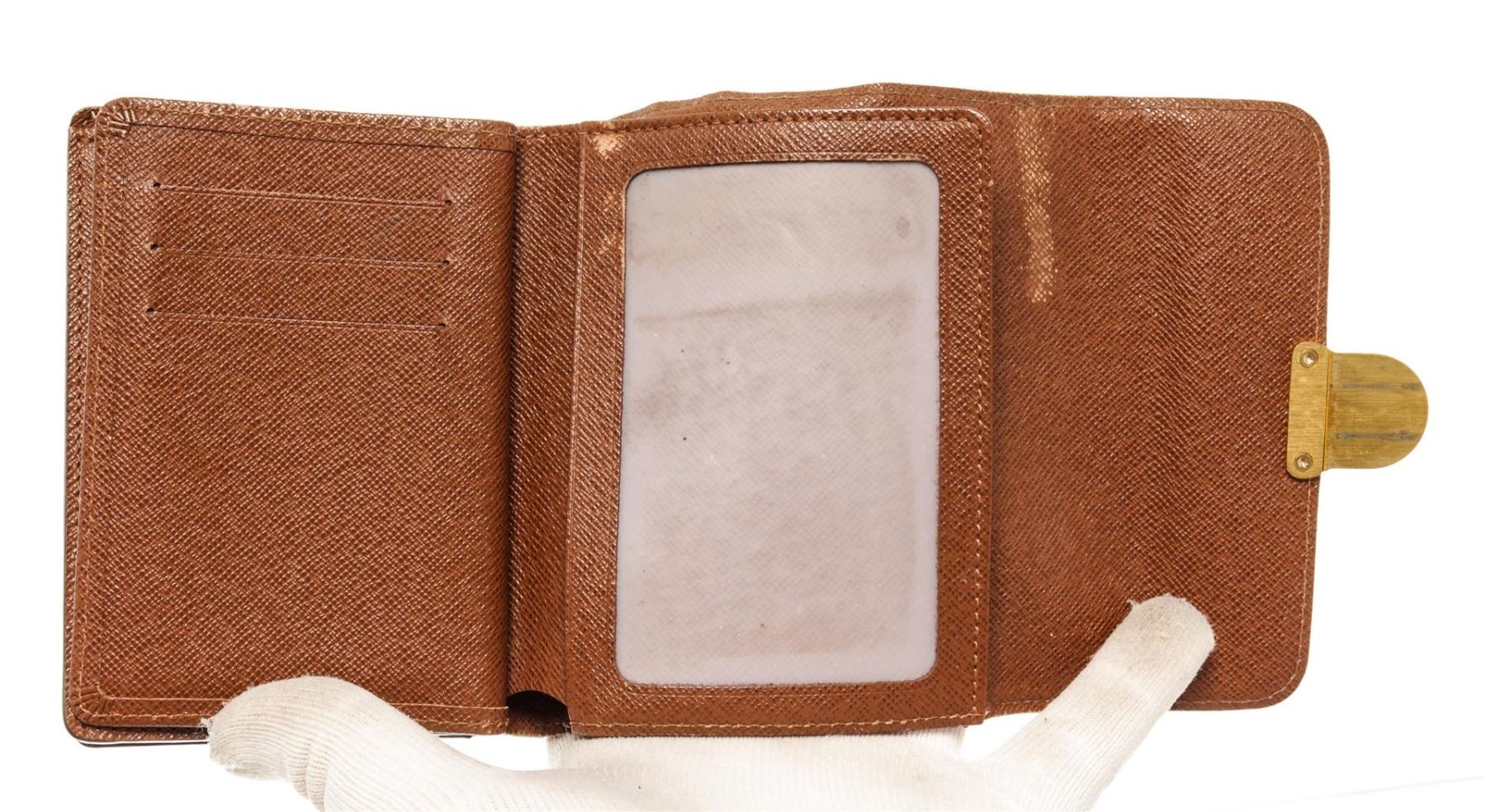 One Louis Vuitton Brown Monogram Koala Wallet. Item is sold AS-IS. All available information is listed in the description and shown in the photo. Louis Vuitton brown monogram Koala wallet with coated canvas exterior, brown leather lining, gold-tone hardware, trim brown vachetta leather, interior zip compartment, flap and push-lock closure, and multiple card slots. Interior is very worn. Please refer to photos.