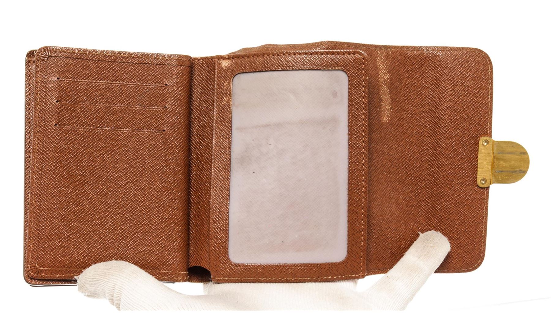 One Louis Vuitton Brown Monogram Koala Wallet. Item is sold AS-IS. All available information is listed in the description and shown in the photo. Louis Vuitton brown monogram Koala wallet with coated canvas exterior, brown leather lining, gold-tone hardware, trim brown vachetta leather, interior zip compartment, flap and push-lock closure, and multiple card slots. Interior is very worn. Please refer to photos.