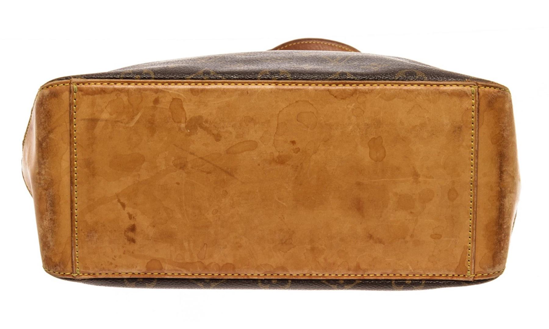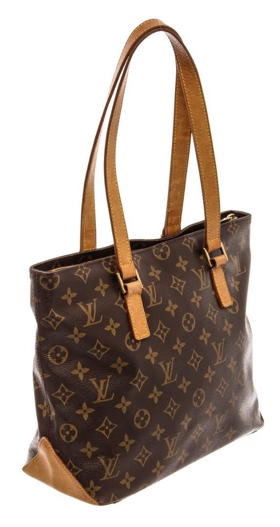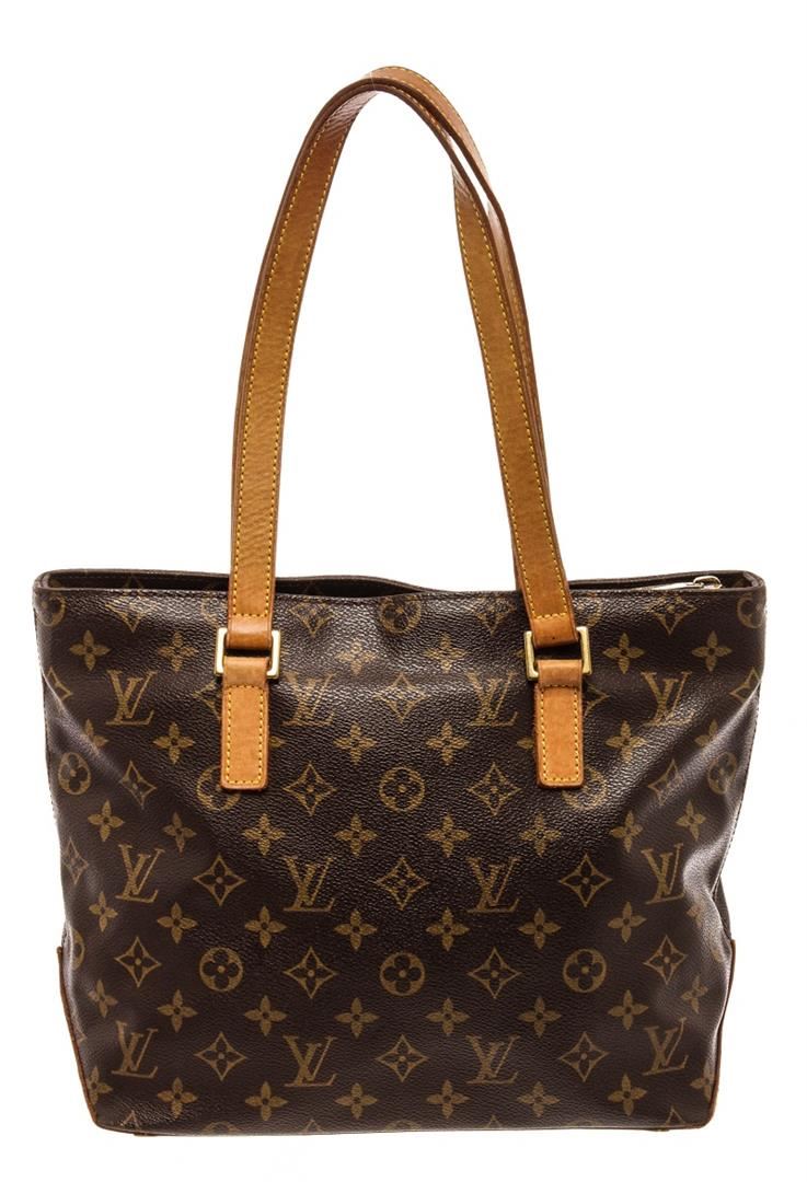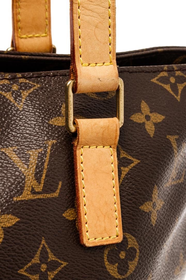 Louis Vuitton Brown Monogram Leather Cabas Piano Tote Bag. All available information is listed in the description and shown in the photos. Louis Vuitton Brown Monogram Leather Cabas Piano Tote Bag with gold-tone hardware, leather trim, dual shoulder straps, leather trim embellishment, canvas lining & single interior pocket, zip closure at top, includes dust bag. Height: 9.5" Width: 11" Depth: 4.5", Shoulder Strap Drop: 9" / 24.13 x 27.94 x 11.43 Cm
