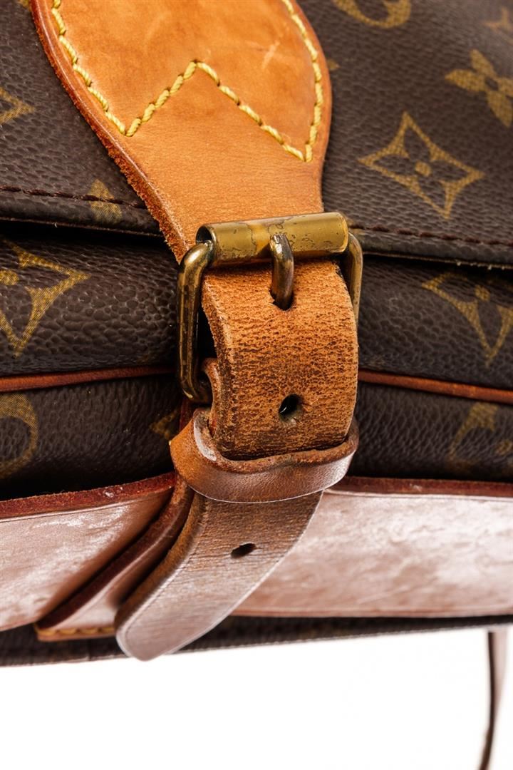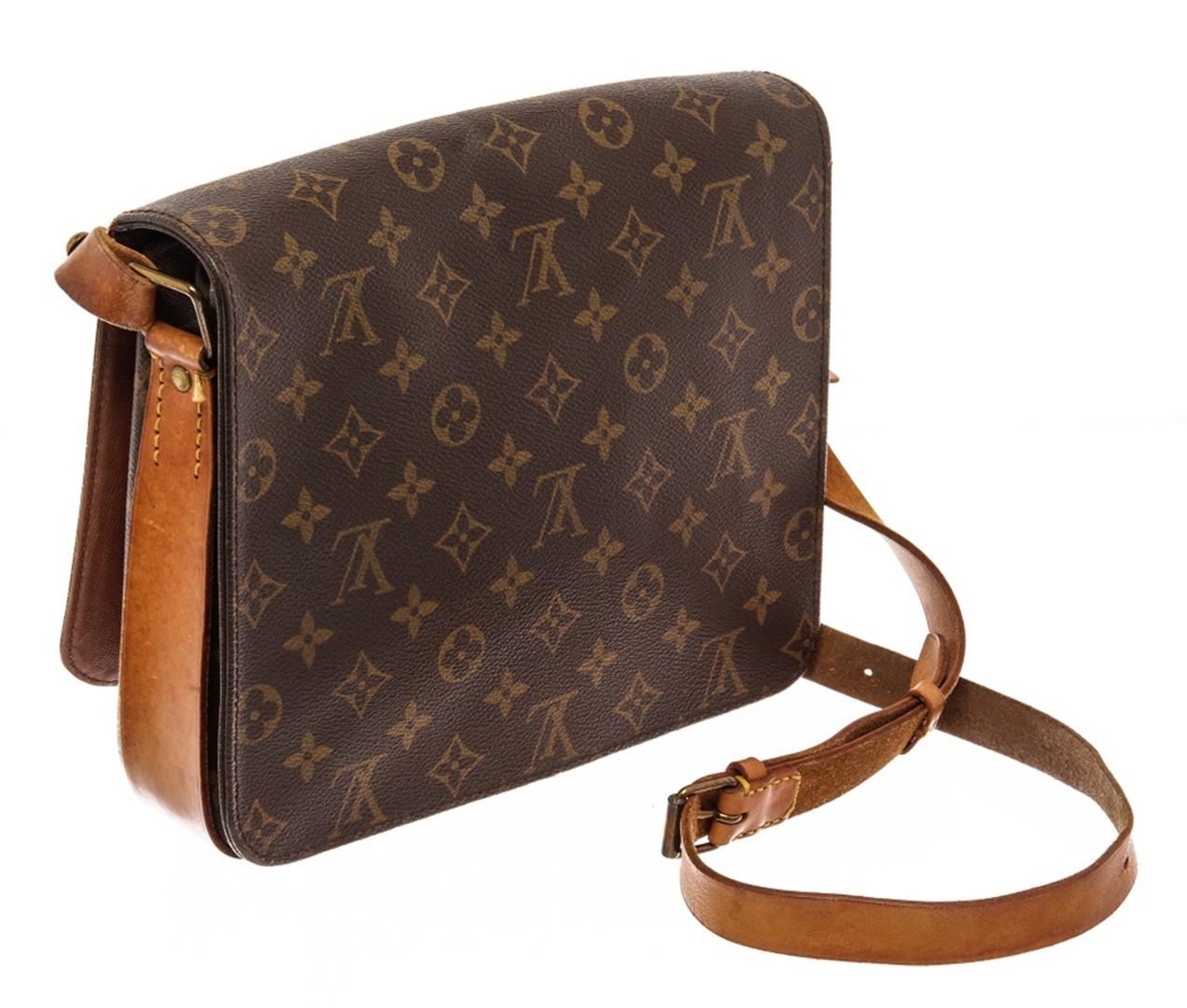 Louis Vuitton Brown Monogram Leather Cartouchiere GM Messenger Bag. All available information is listed in the description and shown in the photos. Louis Vuitton Brown Monogram Leather Cartouchiere GM Messenger Bag with brown printed, brass hardware, single adjustable shoulder strap, leather lining, buckle closure at front. Height: 9.25" Width: 10.25" Depth: 3", Shoulder Strap Drop Max: 21.5" / 23.49 x 26.03 x 7.62 Cm