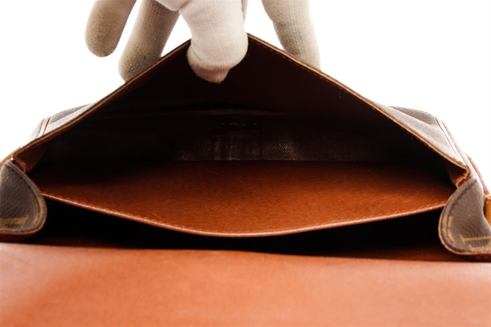 Louis Vuitton Brown Monogram Leather Cartouchiere GM Messenger Bag. All available information is listed in the description and shown in the photos. Louis Vuitton Brown Monogram Leather Cartouchiere GM Messenger Bag with brown printed, brass hardware, single adjustable shoulder strap, leather lining, buckle closure at front. Height: 9.25" Width: 10.25" Depth: 3", Shoulder Strap Drop Max: 21.5" / 23.49 x 26.03 x 7.62 Cm