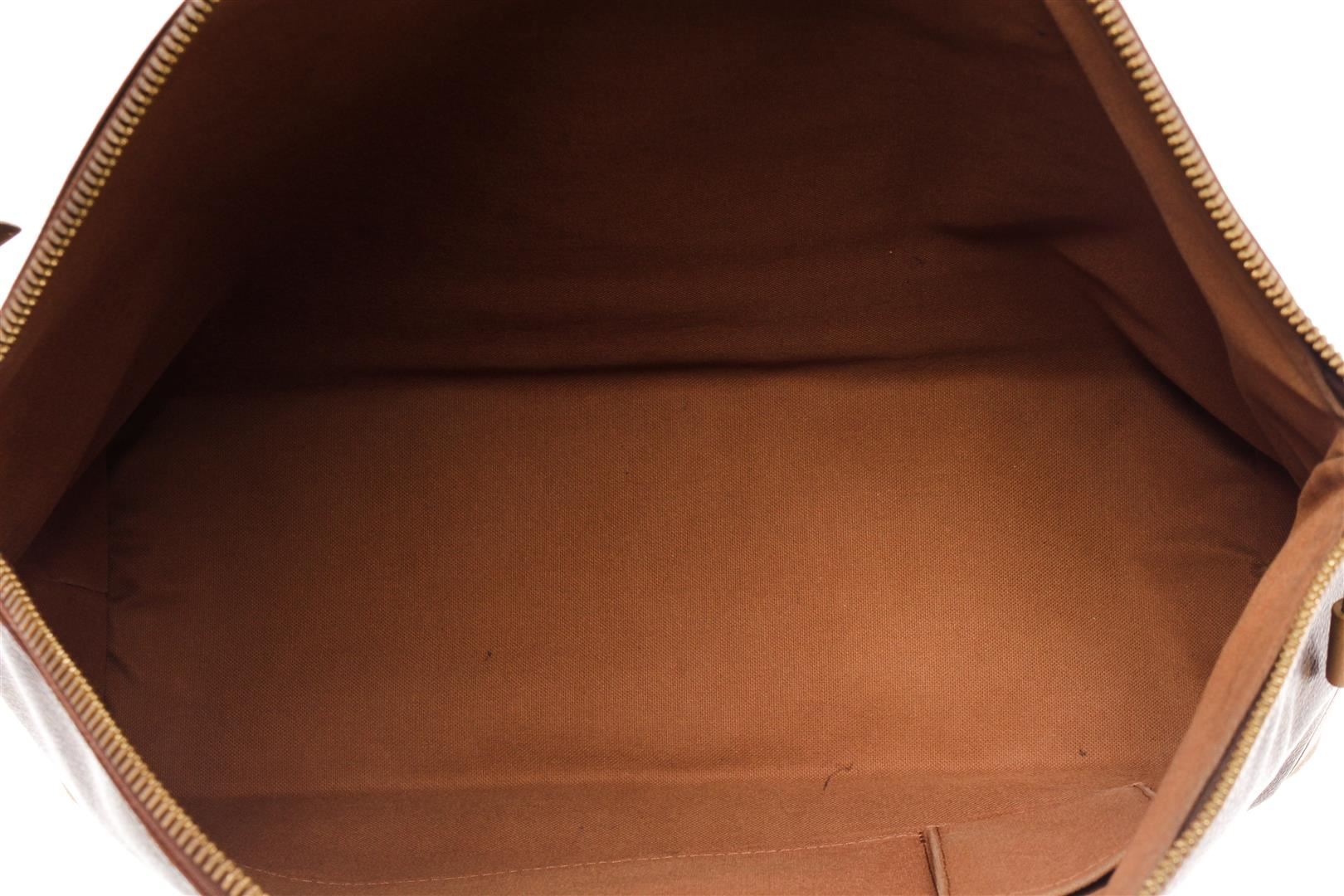 Louis Vuitton Brown Monogram Leather Lockit Horizontal Tote Bag. All available information is listed in the description and shown in the photos. Louis Vuitton Brown Monogram Leather Lockit Horizontal Tote Bag with brass hardware, leather trim, rolled handles, canvas lining & single interior pocket, zip closure at top. Height: 11.75" Width: 15", Handle Drop: 6" / 29.84 x 38.1 Cm
