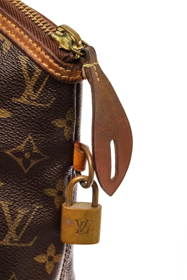 Louis Vuitton Brown Monogram Leather Lockit Horizontal Tote Bag. All available information is listed in the description and shown in the photos. Louis Vuitton Brown Monogram Leather Lockit Horizontal Tote Bag with brass hardware, leather trim, rolled handles, canvas lining & single interior pocket, zip closure at top. Height: 11.75" Width: 15", Handle Drop: 6" / 29.84 x 38.1 Cm