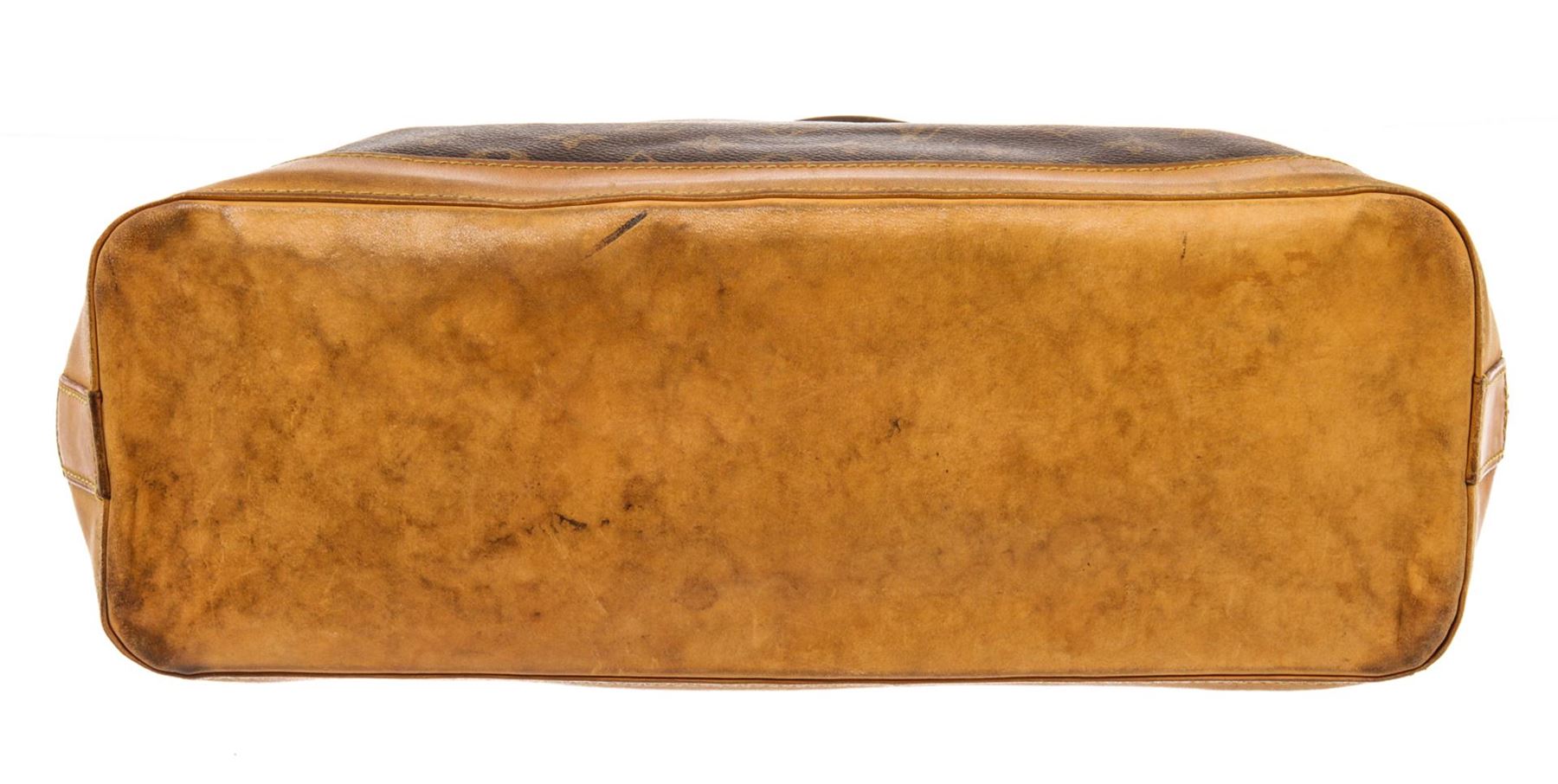 Louis Vuitton Brown Monogram Leather Lockit Horizontal Tote Bag. All available information is listed in the description and shown in the photos. Louis Vuitton Brown Monogram Leather Lockit Horizontal Tote Bag with brass hardware, leather trim, rolled handles, canvas lining & single interior pocket, zip closure at top. Height: 11.75" Width: 15", Handle Drop: 6" / 29.84 x 38.1 Cm