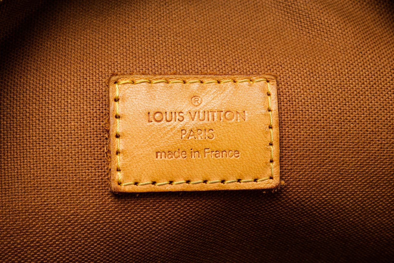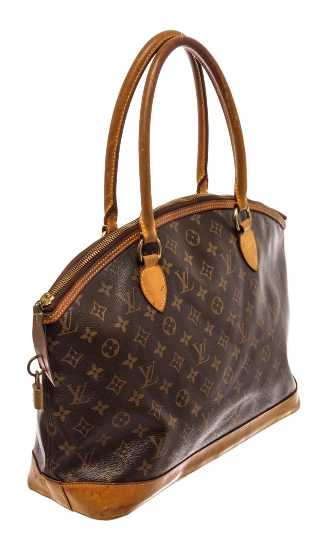 Louis Vuitton Brown Monogram Leather Lockit Horizontal Tote Bag. All available information is listed in the description and shown in the photos. Louis Vuitton Brown Monogram Leather Lockit Horizontal Tote Bag with brass hardware, leather trim, rolled handles, canvas lining & single interior pocket, zip closure at top. Height: 11.75" Width: 15", Handle Drop: 6" / 29.84 x 38.1 Cm
