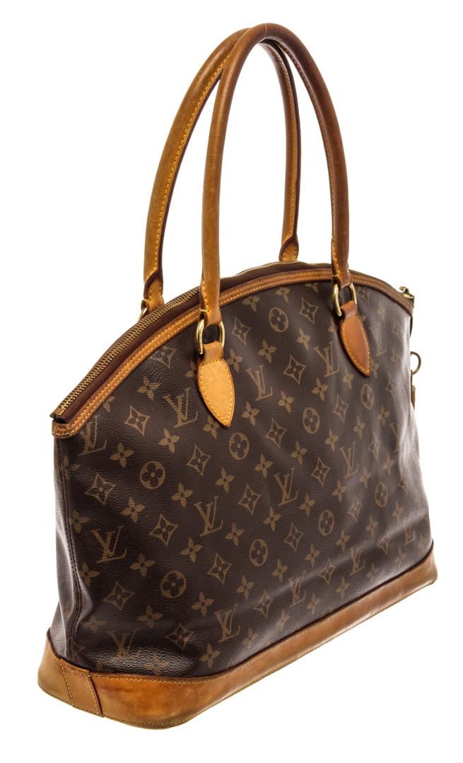 Louis Vuitton Brown Monogram Leather Lockit Horizontal Tote Bag. All available information is listed in the description and shown in the photos. Louis Vuitton Brown Monogram Leather Lockit Horizontal Tote Bag with brass hardware, leather trim, rolled handles, canvas lining & single interior pocket, zip closure at top. Height: 11.75" Width: 15", Handle Drop: 6" / 29.84 x 38.1 Cm