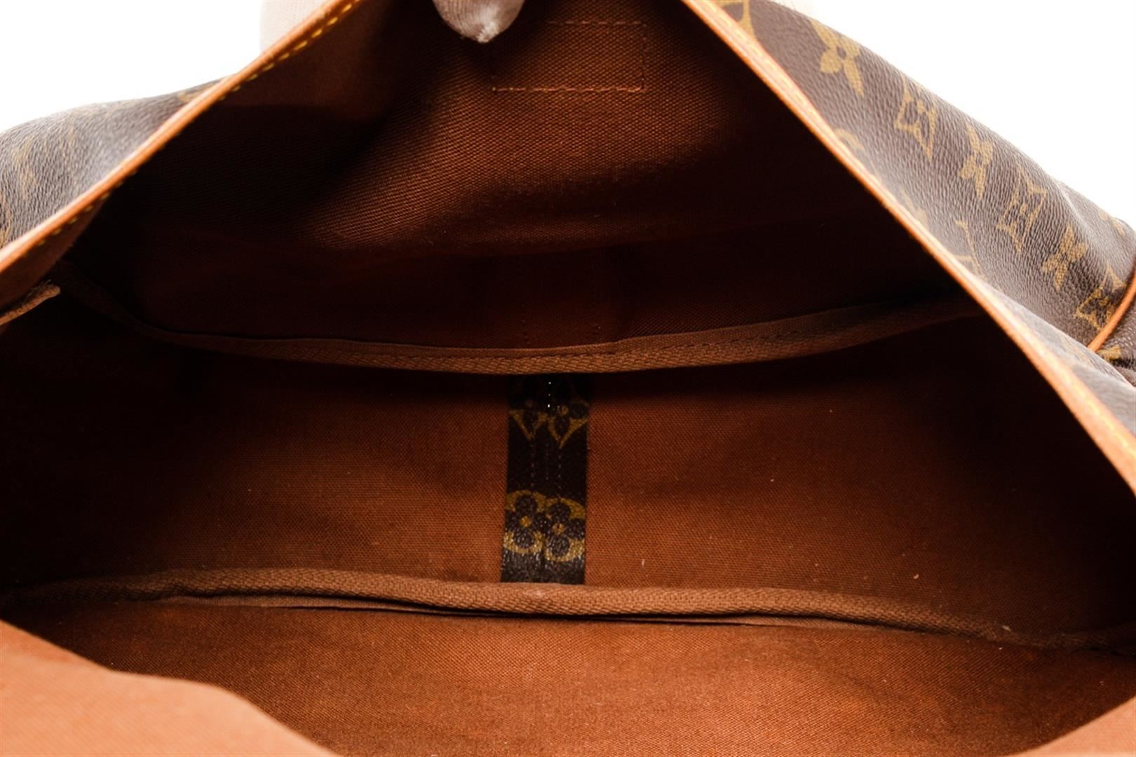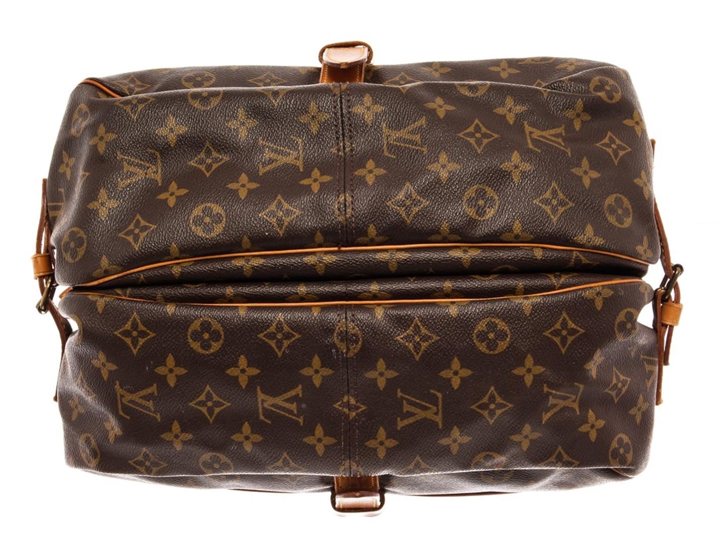 Louis Vuitton Brown Monogram Leather Saumur 30 Messenger Bag. All available information is listed in the description and shown in the photos. Louis Vuitton Brown Monogram Leather Saumur 30 Messenger Bag with brass hardware, single adjustable shoulder strap, leather trim embellishment, canvas lining & single interior pocket, clasp closure at front. Height: 11.75" Width: 11.5" Depth: 3.5", Shoulder Strap Drop: 12.5" / 29.84 x 29.21 x 8.89 Cm