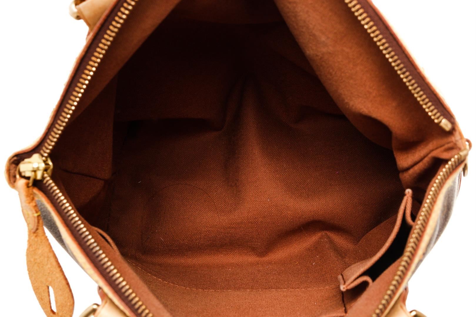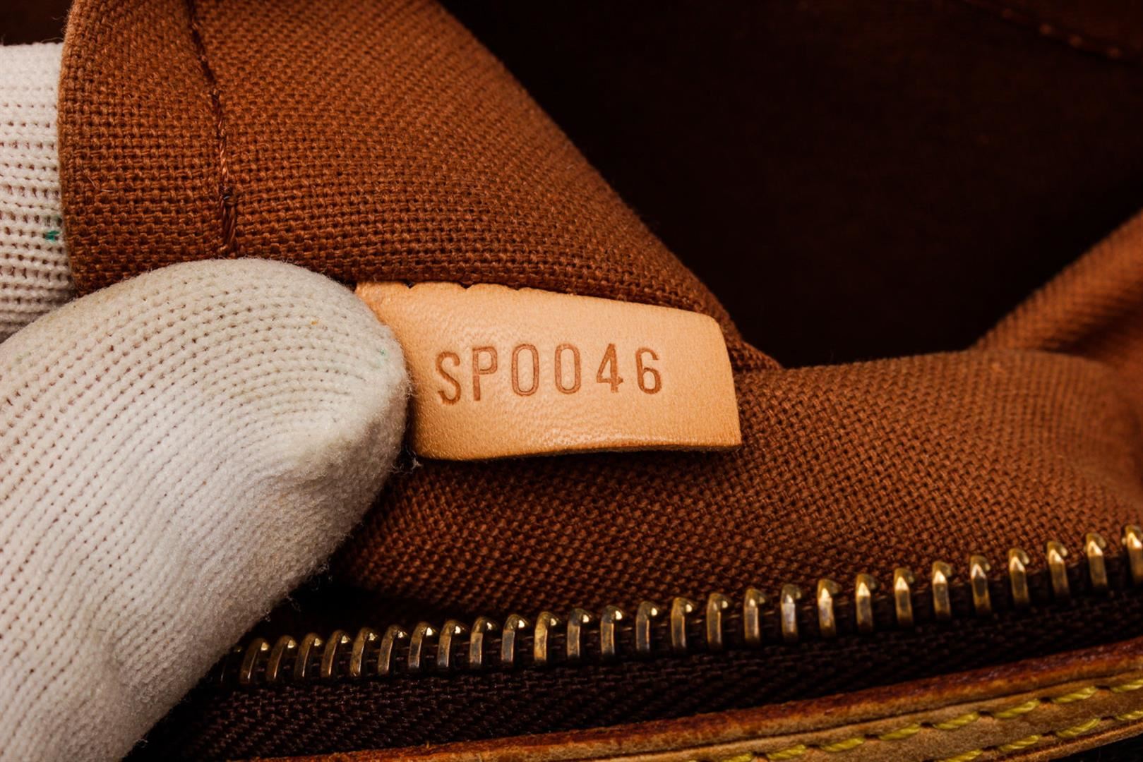 Louis Vuitton Brown Monogram Lockit Vertical Handbag with material monogram canvas, gold-tone hardware, trim tan vachetta leather, interior slip pocket, dual top handle and zipper closure.