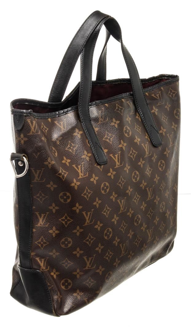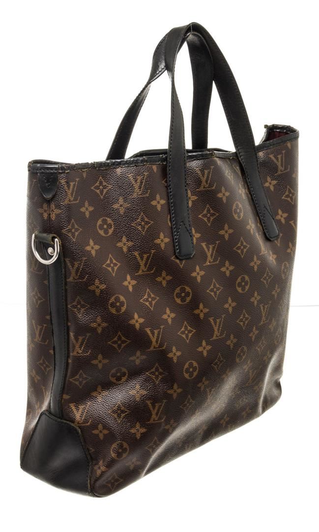 Louis Vuitton Brown Monogram Macassar Davis Tote Bag with monogram canvas, gold-tone hardware, interior zip pocket, top handle, shoulder strap and snap closure.