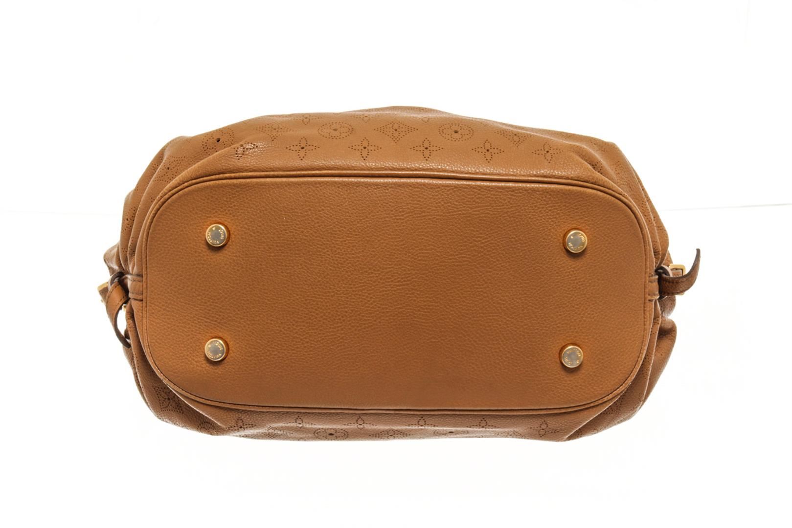 One Louis Vuitton Brown Monogram Mahina Leather Surya L Shoulder Bag. Item is sold AS-IS. All available information is listed in the description and shown in the photo. louis vuitton brown monogram mahina leather surya l shoulder bag with it features top handles and a flap with a push-lock closure that leads to an alcantara-lined interior. the bag is finished with protective metal feet and gold-tone hardware. Height: 10.24" Width: 5.91" Depth: 13.39" , Handle Drop: / 26 x 15 x 34 Cm