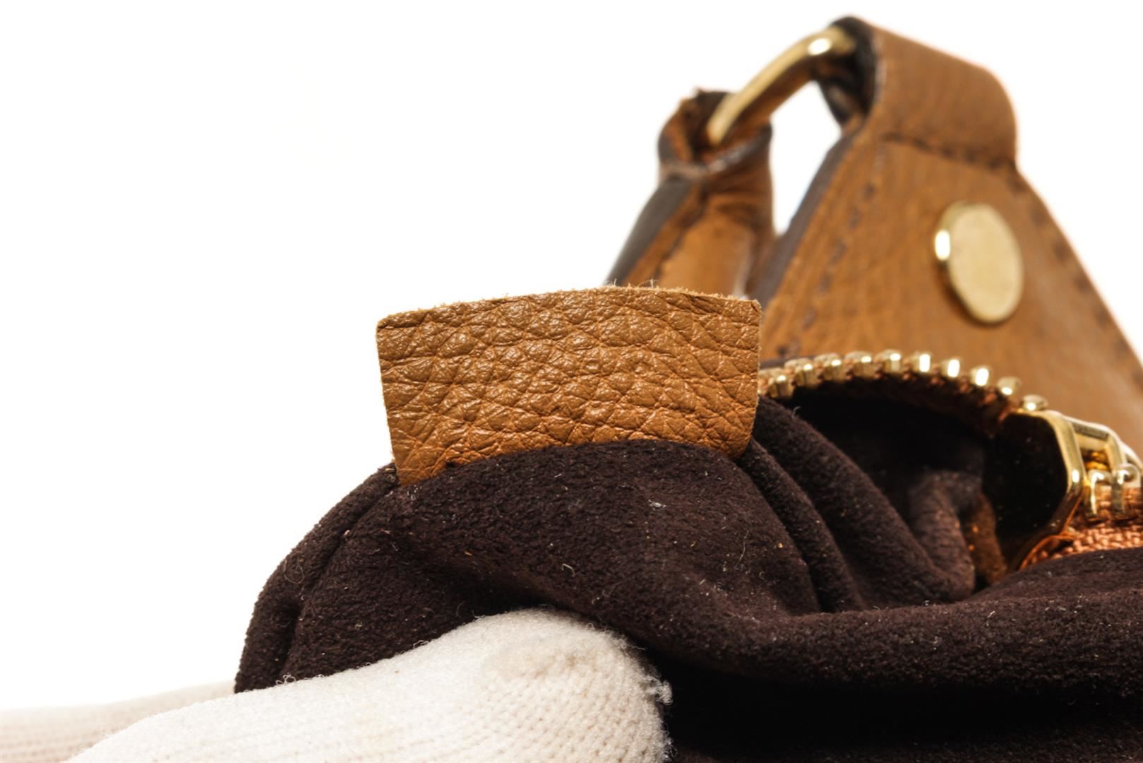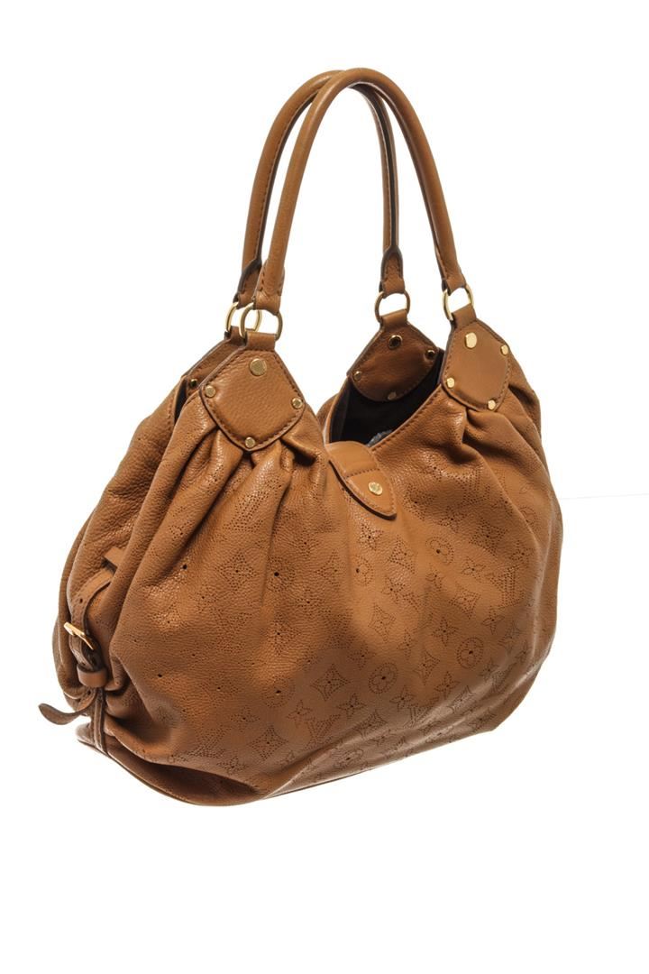 One Louis Vuitton Brown Monogram Mahina Leather Surya L Shoulder Bag. Item is sold AS-IS. All available information is listed in the description and shown in the photo. louis vuitton brown monogram mahina leather surya l shoulder bag with it features top handles and a flap with a push-lock closure that leads to an alcantara-lined interior. the bag is finished with protective metal feet and gold-tone hardware. Height: 10.24" Width: 5.91" Depth: 13.39", Handle Drop: / 26 x 15 x 34 Cm
