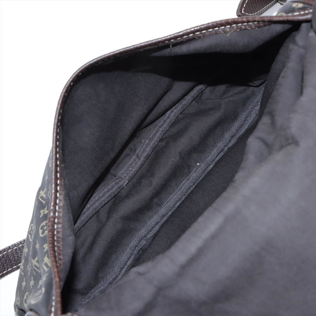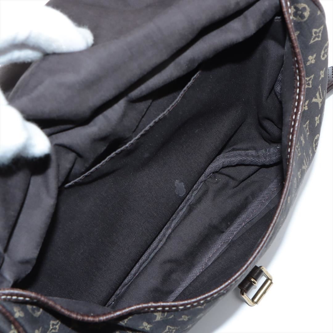 Brown Mini Lin canvas of Louis Vuitton SaumurCrossbody Bag features gold-tone hardware, tonal leather accents with white contrast stitching, single flat shoulder strap with buckle adjustment, dual compartments, brown canvas lining, single interior slit po