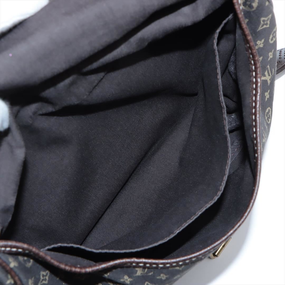 Brown Mini Lin canvas of Louis Vuitton SaumurCrossbody Bag features gold-tone hardware, tonal leather accents with white contrast stitching, single flat shoulder strap with buckle adjustment, dual compartments, brown canvas lining, single interior slit po