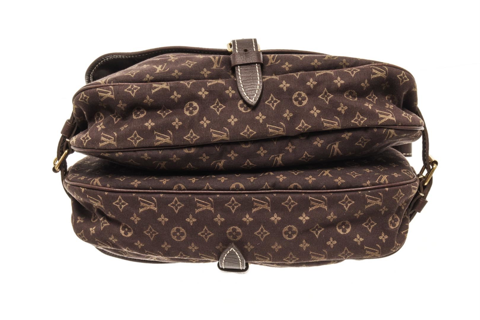 Louis Vuitton Brown Monogram Mini Lin Saumur 30 Ba. All available information is listed in the description and shown in the photos. louis vuitton brown monogram mini lin saumur 30 bag with brown louis vuitton monogram mini lin saumur 30 bag. the monogram mini lin saumur features canvas body, leather trim, single adjustable shoulder strap, buckle closures at front and back, canvas lining and dual interior pockets. 7.9" L x 11" W x 4.3" D / 20.06 x 27.94 x 10.92 CM