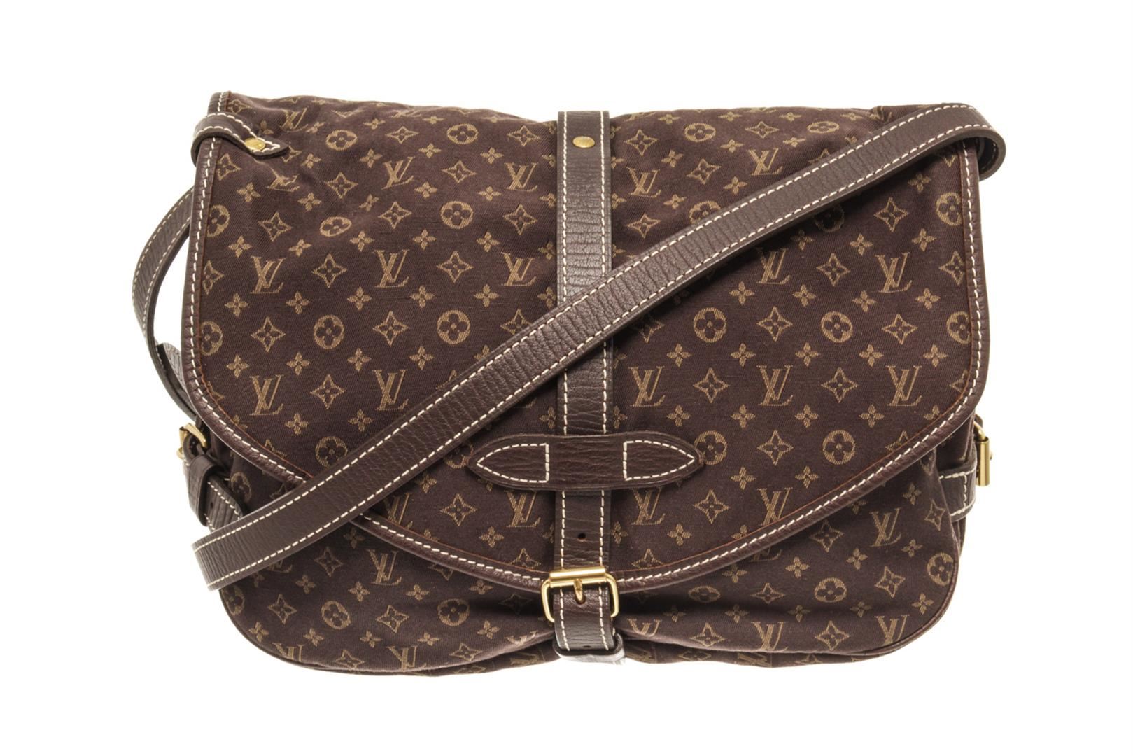 Louis Vuitton Brown Monogram Mini Lin Saumur 30 Ba. All available information is listed in the description and shown in the photos. louis vuitton brown monogram mini lin saumur 30 bag with brown louis vuitton monogram mini lin saumur 30 bag. the monogram mini lin saumur features canvas body, leather trim, single adjustable shoulder strap, buckle closures at front and back, canvas lining and dual interior pockets. 7.9" L x 11" W x 4.3" D / 20.06 x 27.94 x 10.92 CM