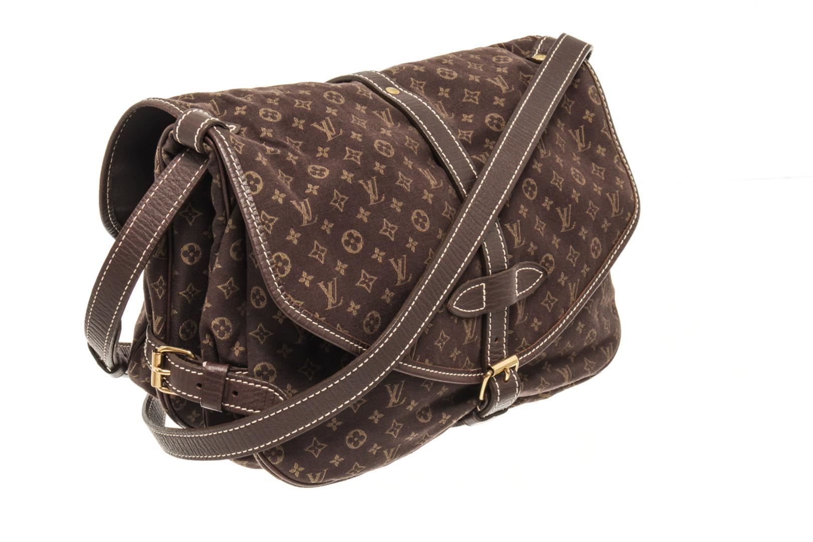 Louis Vuitton Brown Monogram Mini Lin Saumur 30 Ba. All available information is listed in the description and shown in the photos. louis vuitton brown monogram mini lin saumur 30 bag with brown louis vuitton monogram mini lin saumur 30 bag. the monogram mini lin saumur features canvas body, leather trim, single adjustable shoulder strap, buckle closures at front and back, canvas lining and dual interior pockets. 7.9" L x 11" W x 4.3" D / 20.06 x 27.94 x 10.92 CM