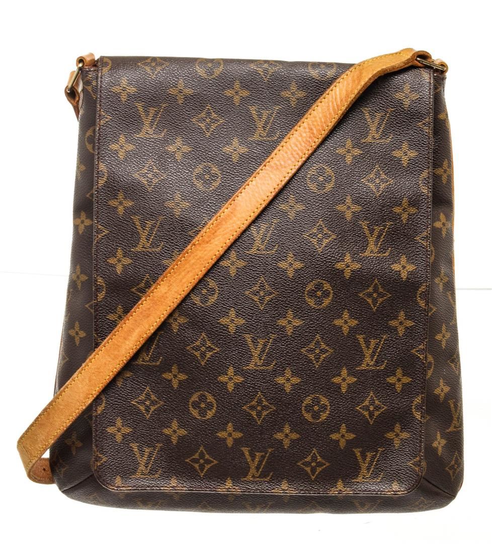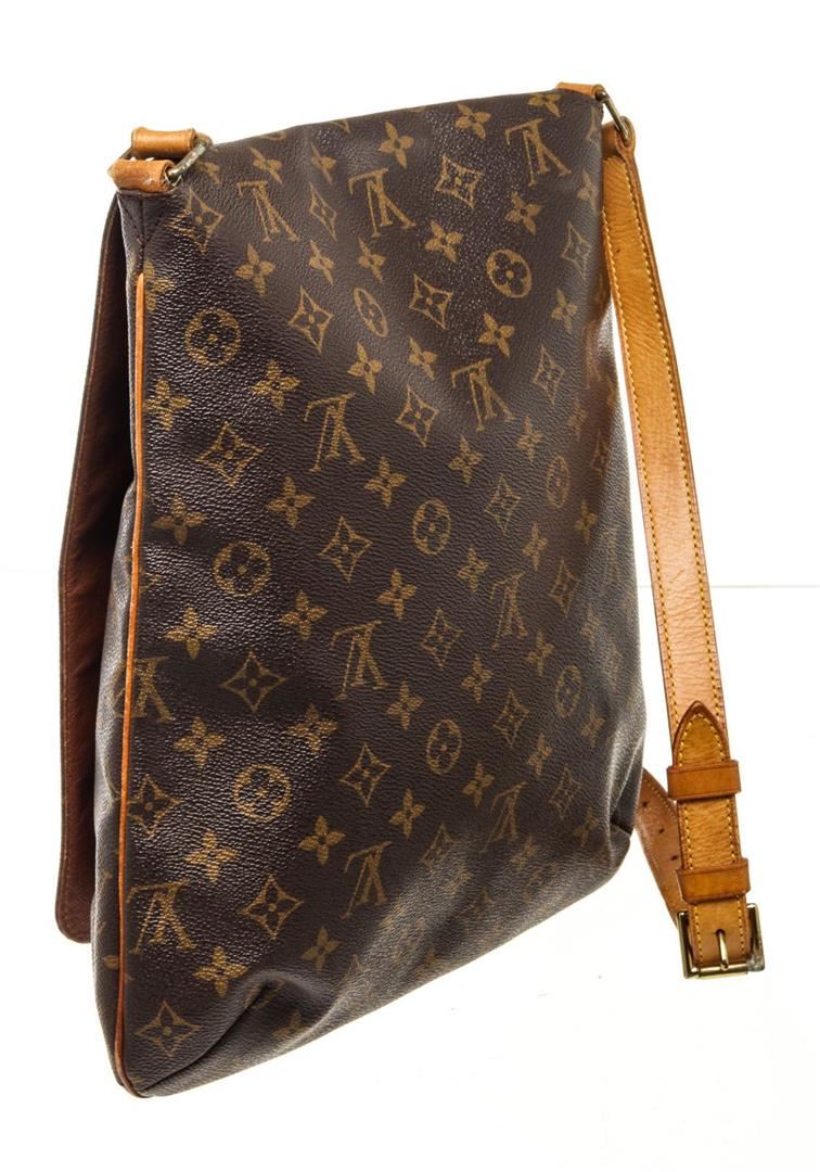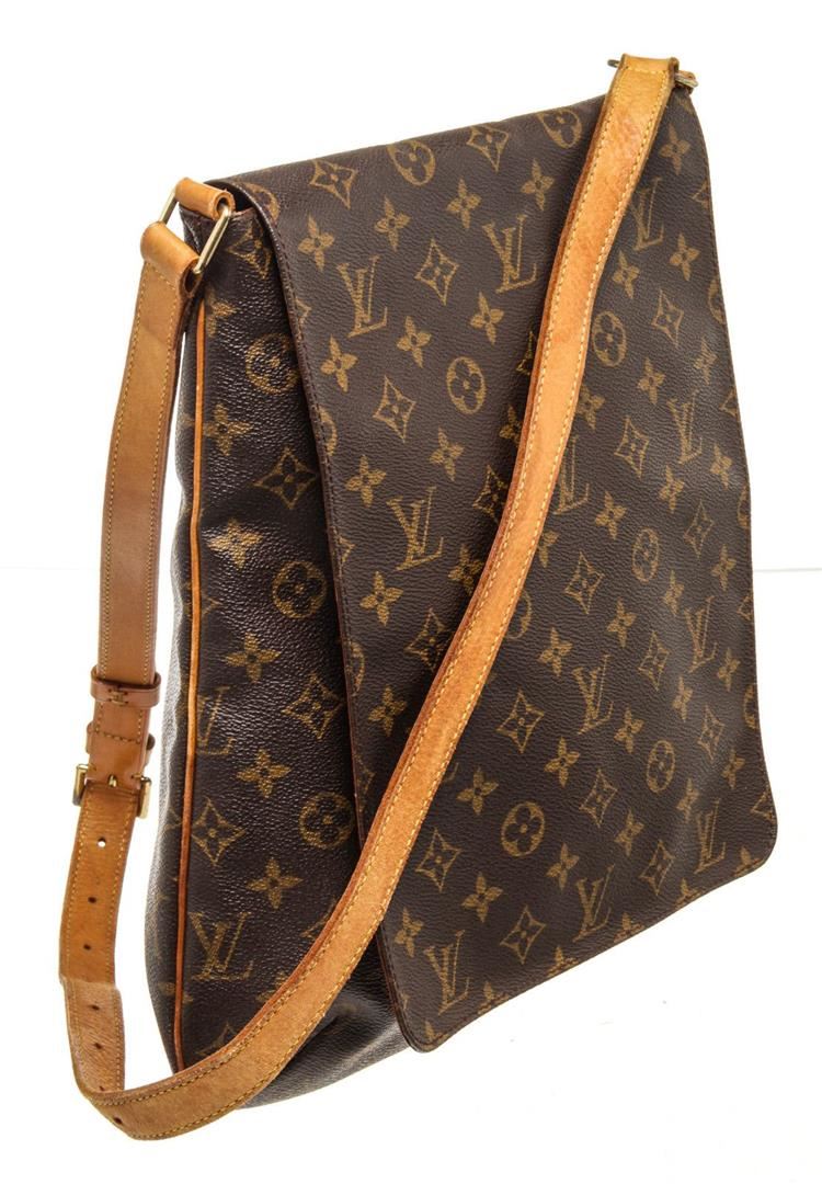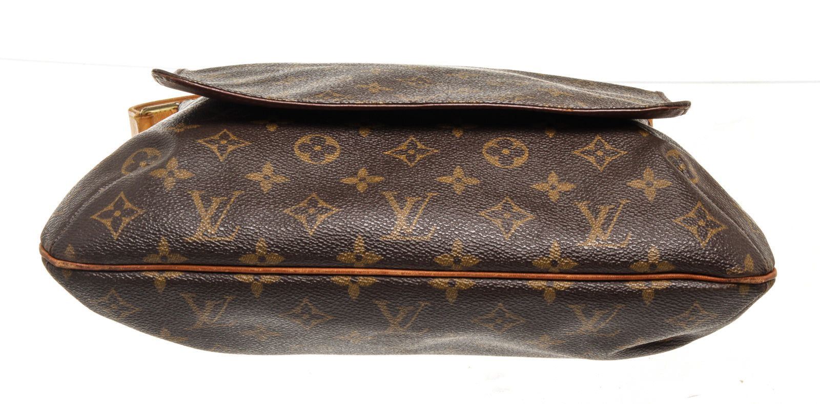 Louis Vuitton Brown Monogram Musette Salsa Short Strap Shoulder Bag with monogram canvas, gold-tone hardware, trim tan vachetta leather, interior slip pockets, shoulder strap and flap closure.