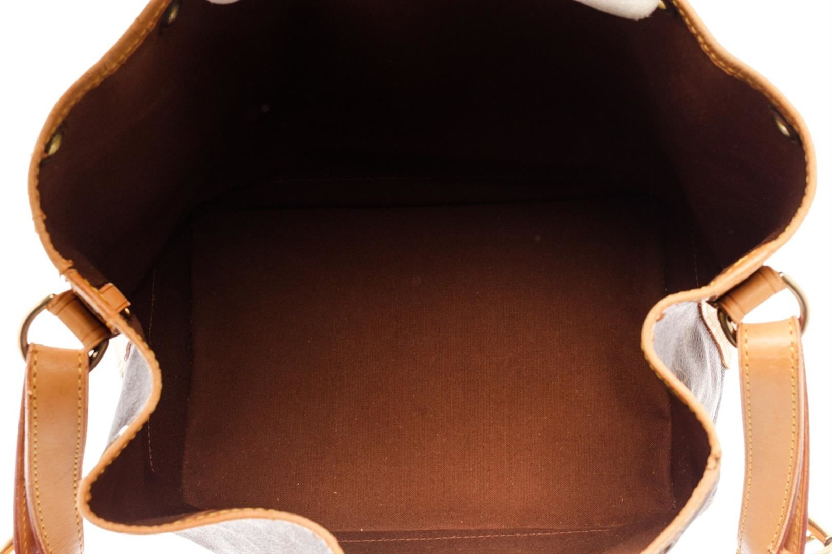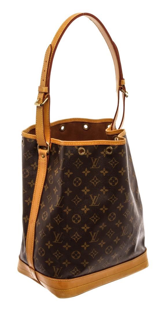 Louis Vuitton Brown Monogram Noe PM Shoulder Bag. All available information is listed in the description and shown in the photos. Louis Vuitton Brown Monogram Noe PM Shoulder Bag with brown coated canvas, brass hardware, single adjustable shoulder strap, leather trim embellishment, canvas lining, drawstring closure at front. Height: 12" Width: 10.5" Depth: 7.5", Shoulder Strap Drop Max: 11" / 30.48 x 26.67 x 19.05 Cm