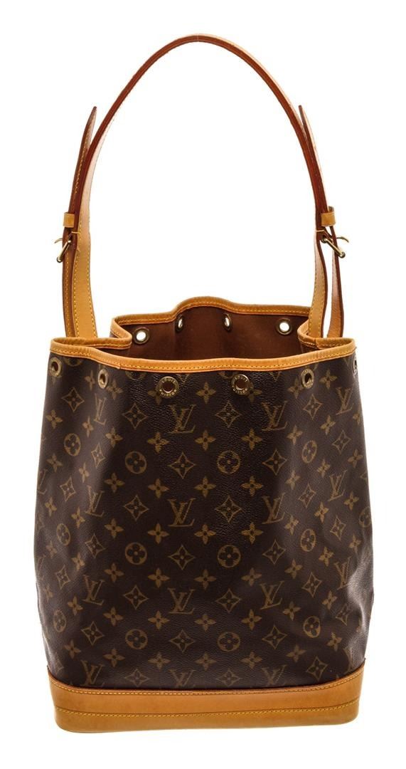 Louis Vuitton Brown Monogram Noe PM Shoulder Bag. All available information is listed in the description and shown in the photos. Louis Vuitton Brown Monogram Noe PM Shoulder Bag with brown coated canvas, brass hardware, single adjustable shoulder strap, leather trim embellishment, canvas lining, drawstring closure at front. Height: 12" Width: 10.5" Depth: 7.5", Shoulder Strap Drop Max: 11" / 30.48 x 26.67 x 19.05 Cm