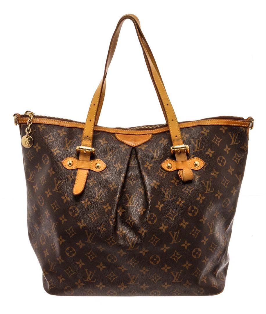 Louis Vuitton Brown Monogram Palermo GM Tote Bag. All available information is listed in the description and shown in the photos. Louis Vuitton Brown Monogram Palermo GM Tote Bag with brown coated canvas, brass hardware, dual adjustable shoulder straps, leather trim embellishment, canvas lining & three interior pockets, zip closure at top. Height: 13" Width: 14" Depth: 7.5", Shoulder Strap Drop: 10" / 33.02 x 35.56 x 19.05 Cm