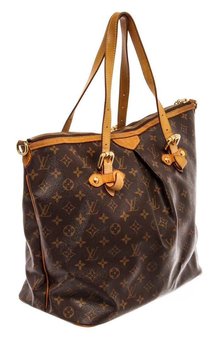Louis Vuitton Brown Monogram Palermo GM Tote Bag. All available information is listed in the description and shown in the photos. Louis Vuitton Brown Monogram Palermo GM Tote Bag with brown coated canvas, brass hardware, dual adjustable shoulder straps, leather trim embellishment, canvas lining & three interior pockets, zip closure at top. Height: 13" Width: 14" Depth: 7.5", Shoulder Strap Drop: 10" / 33.02 x 35.56 x 19.05 Cm